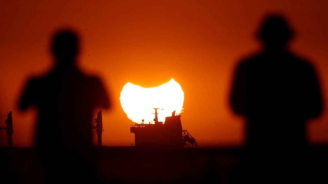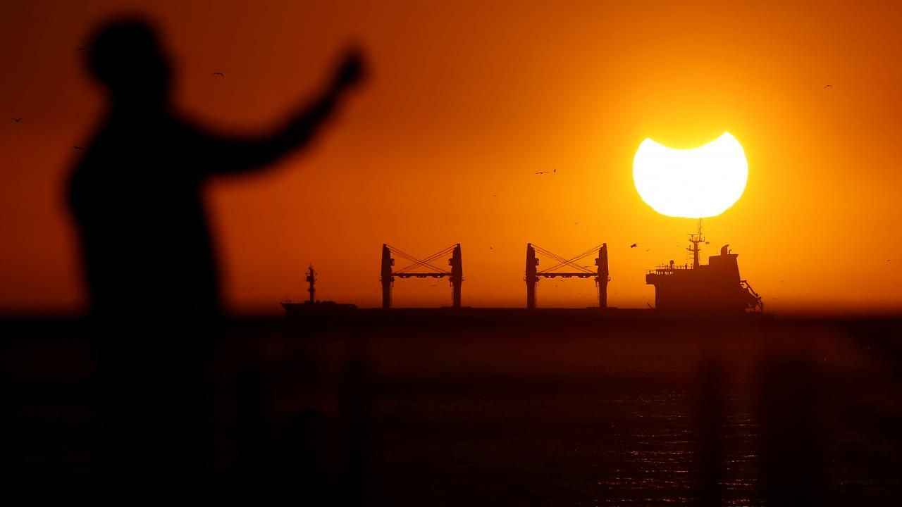 Çoğunlukla Şili'nin batı kıyısında görülen parçalı güneş tutulması sırasında, gün batarken nadir görülen "boynuzlu güneş" görüntüsü oluştu.