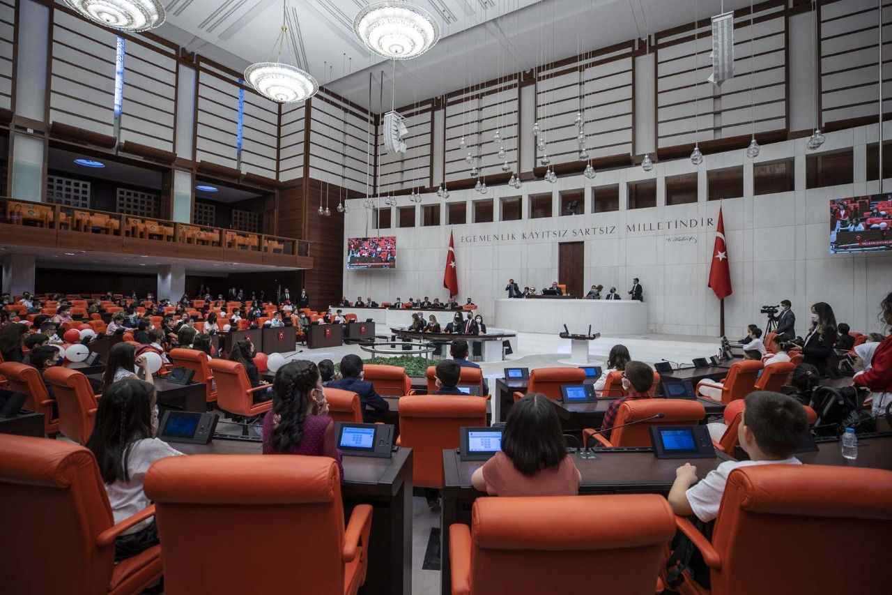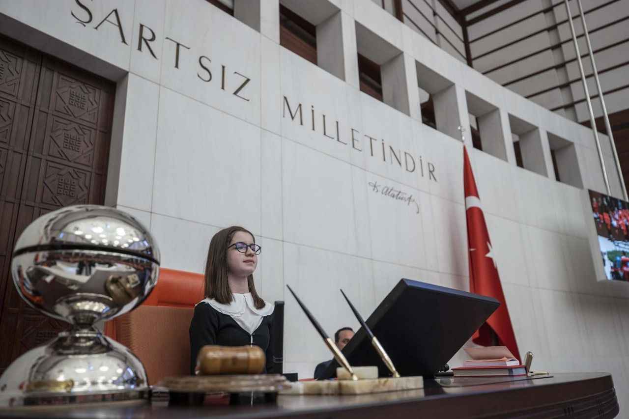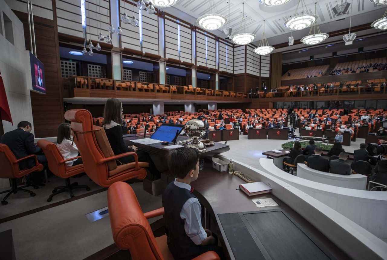 Oturumda TBMM Başkanı Mustafa Şentop, çocuklara hitabından sonra koltuğunu devretmek üzere başkan değişimi için önergeyi okuttu. Değişim önergesinden sonra başkan ve katip üyelik için belirlenen küçük misafirlerin isimleri oylamaya sunuldu. Oylamada başkan adayı için meclis sıralarında oturan çocuklardan ret oylarının kalkması gülüşmelere neden oldu.