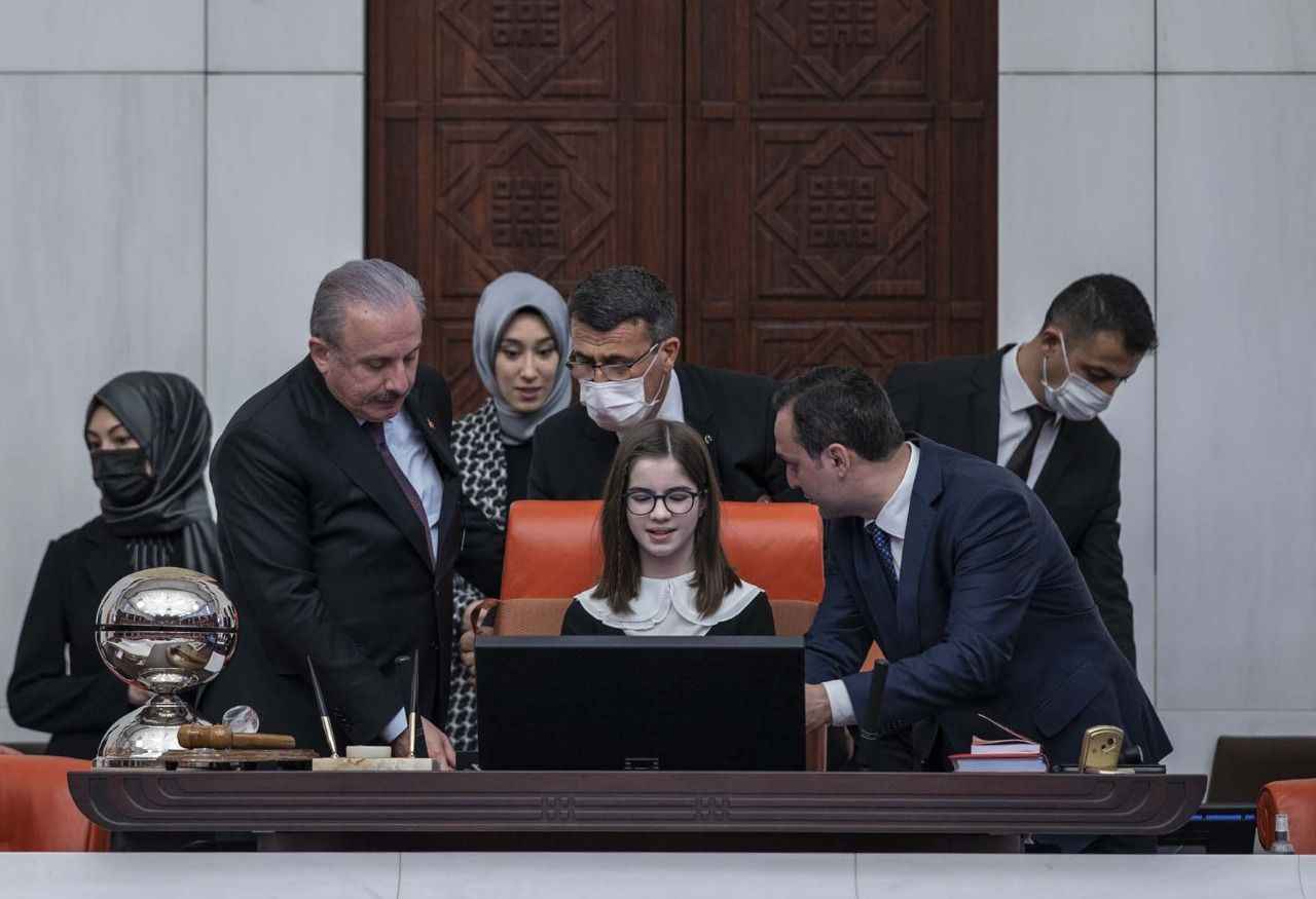 Mustafa Şentop, hayır oyu için el kaldıran çocukları görünce ön sıralarda oturan CHP Gurup Başkanvekili Özgür Özel'e takıldı. Şentop'un gülerek, "Özgür Bey bakın muhalefet her yerde var" demesi Genel Kurul'da kahkahalara neden oldu. Oylamanın ardından Havva Dilay Gülez, TBMM Başkanı olarak Şentop'un koltuğuna oturdu.