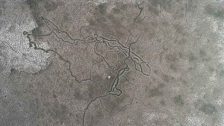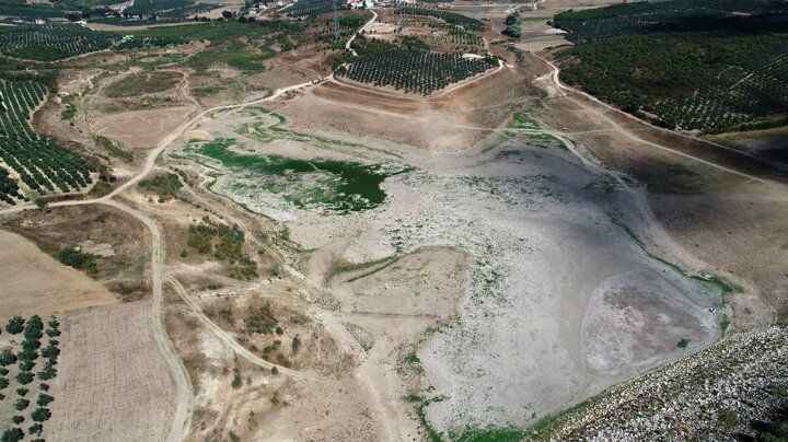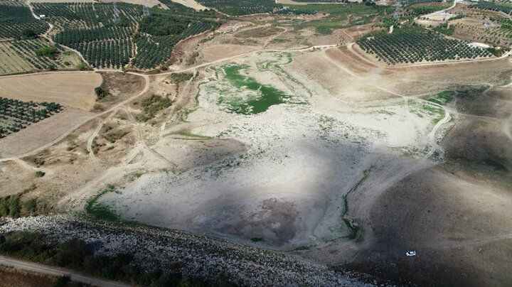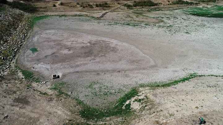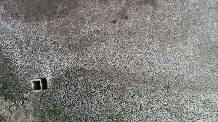 Bursa'nın Mudanya ilçesinde bulunan Hasköy Göleti tamamen kurudu. Dronla havadan görüntülenen göletteki çekilme bölgede incir, zeytin gibi tarım ürünleriyle geçinen köylüyü tedirgin etti.