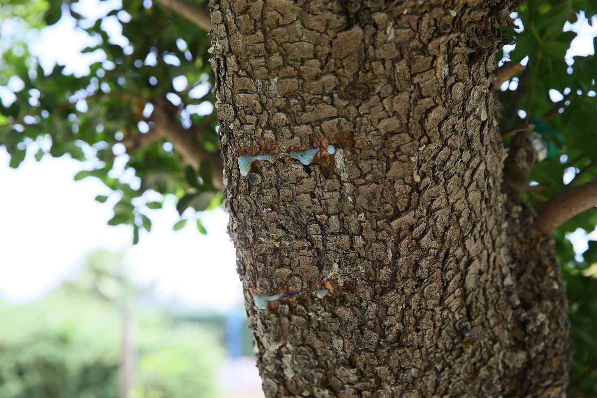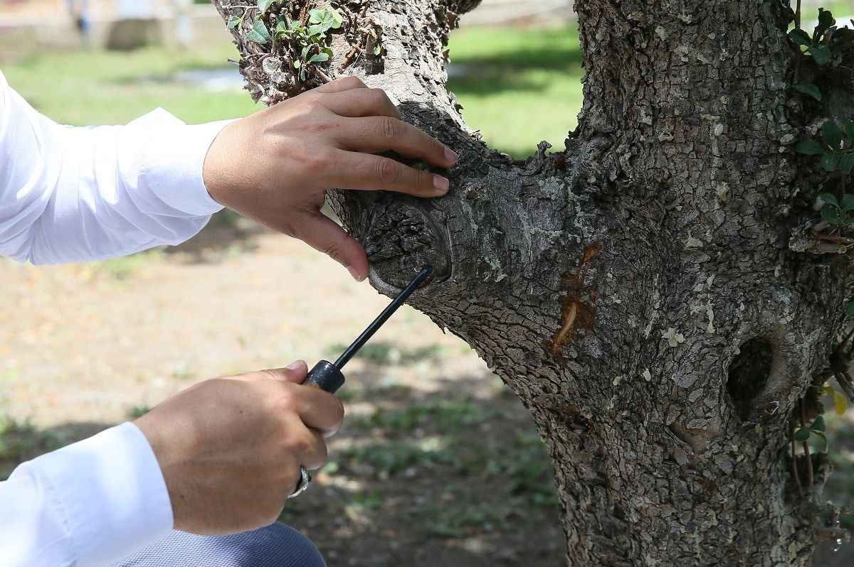 Mustafa Özen, Çeşme Meteoroloji İlçe Müdürlüğü bahçesindeki sakız ağaçlarında hasat öncesi "çizim" işlemine katıldı.