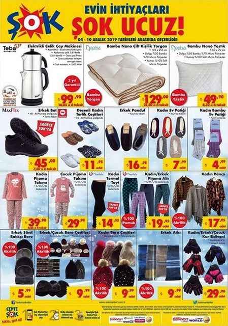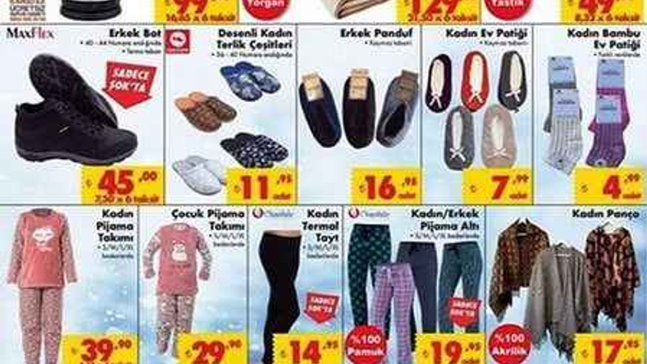 Bugünden itibaren mağazalardaki raflarda yerini alacak olan yastık, yorgan, Erkek Bot, Terlik, Ev Patiği, Pijama takımı gibi birçok ürün sizleri bekliyor olacak. Kiş aylarında bulunduğumuz bu günlerde ise vazgeçilmez aksesuarlardan atkı bere ve eldiven gibi ürünler de katalogda yerini aldı.
