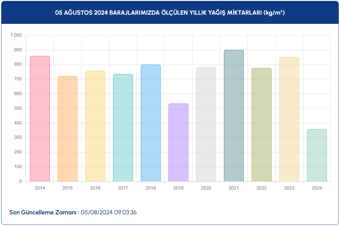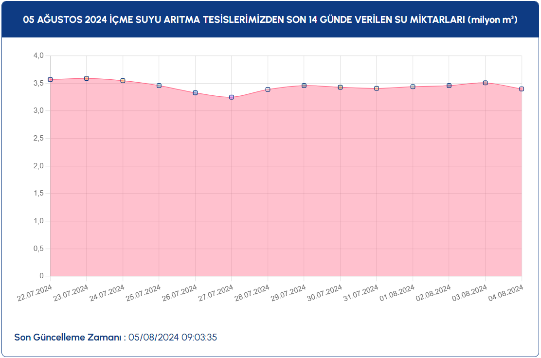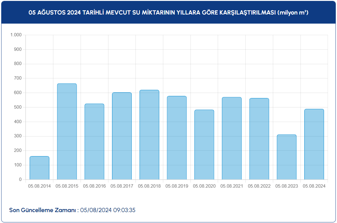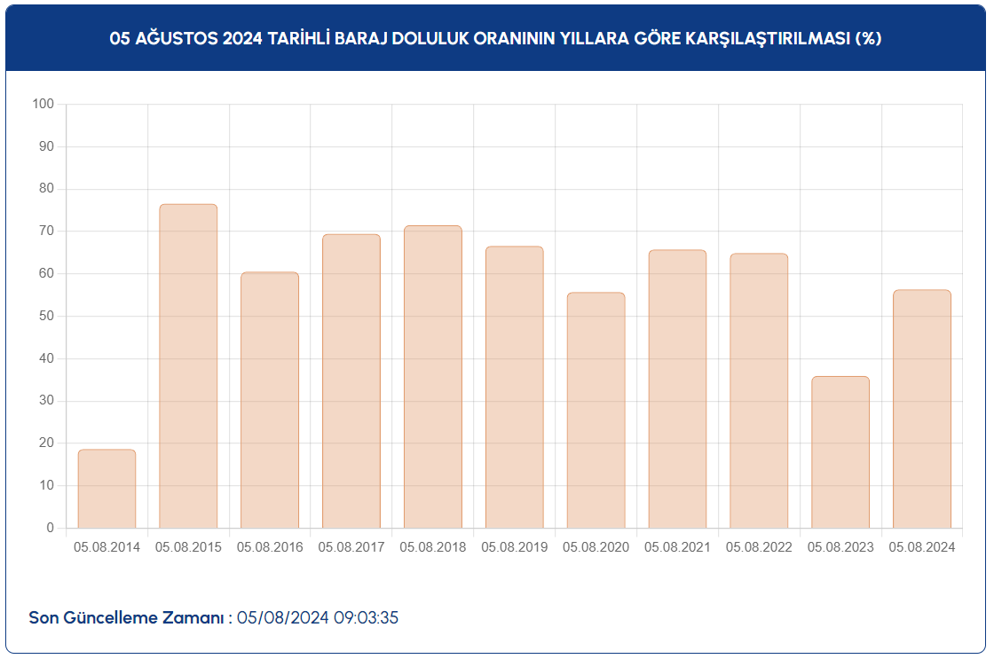 5 Ağustos tarihi itibarıyla İSKİ ortalama baraj doluluk oranı yüzde 56.34 oldu.