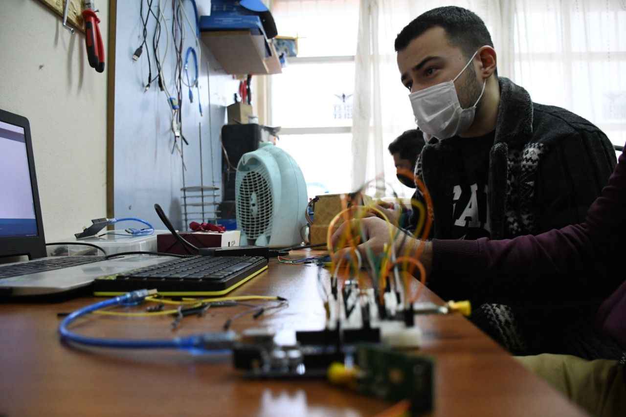 Roketle, TEKNOFEST'e katılıp şampiyon olmayı hedefleyen genç mühendis adayları, çalışmalarını üniversite bünyesindeki atölyelerinde yeni tip koronavirüs (Kovid-19) tedbirleri çerçevesinde sürdürüyor.