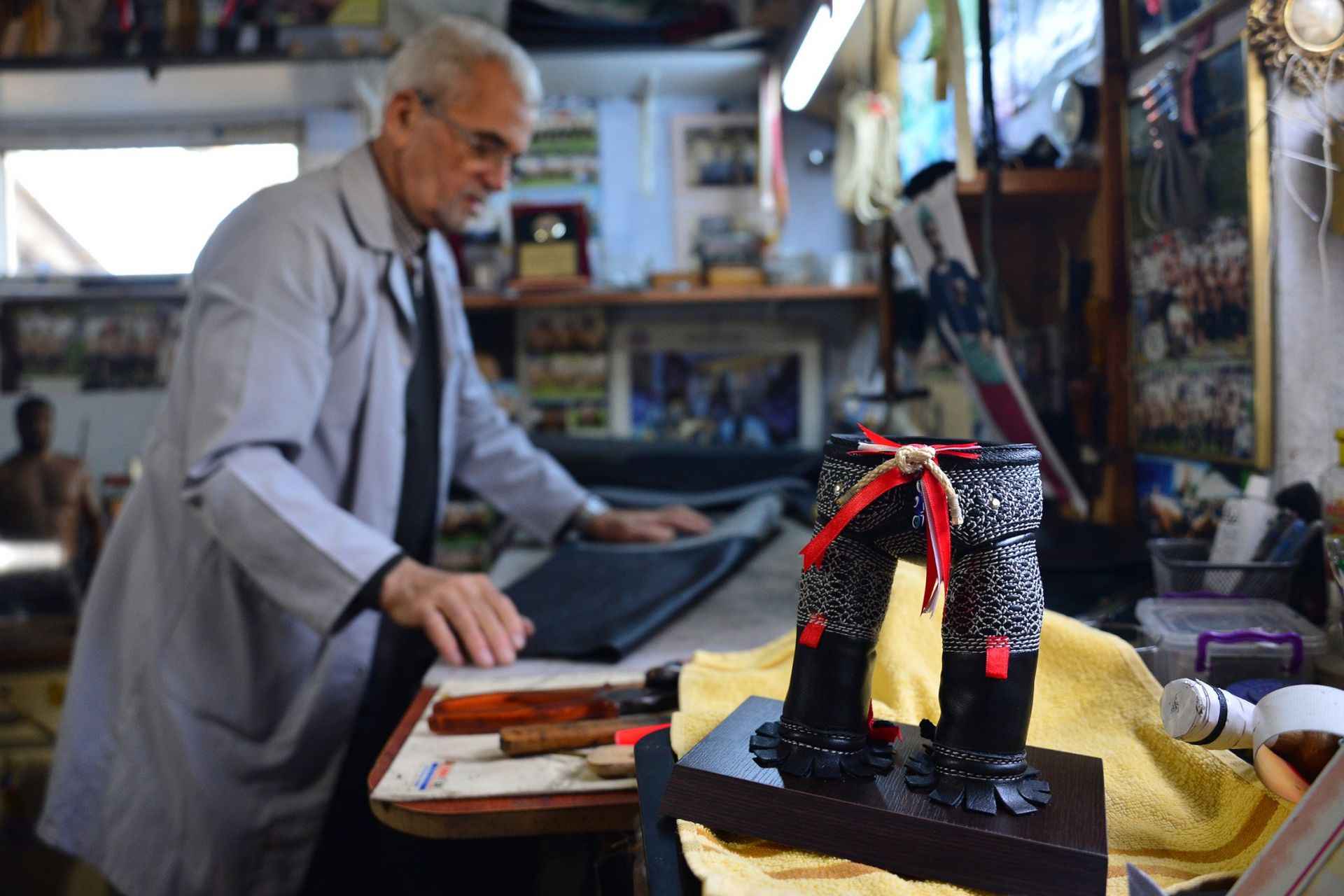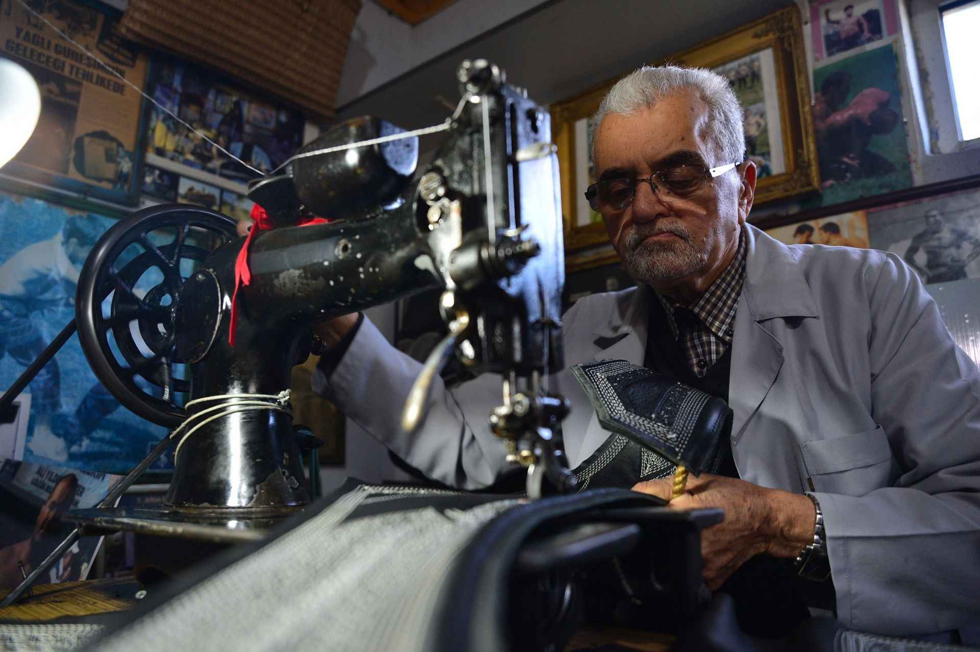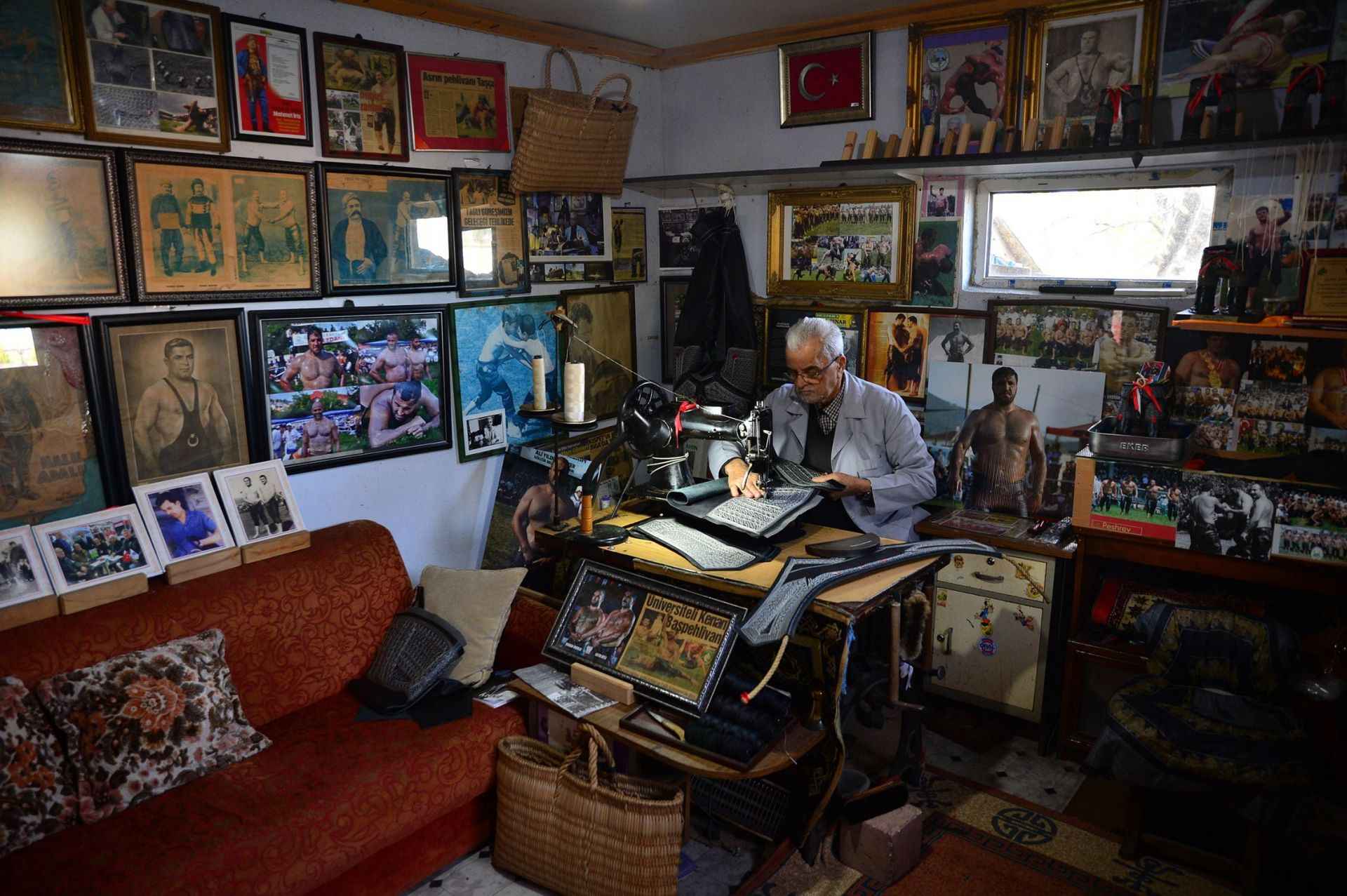 Ustasının yanında 13 yaşındayken daha önce "saraçlık" olarak bilinen mesleğe başlayan Şahin, Çanakkale'nin Biga ilçesinde duvarlarını pehlivan fotoğraflarının süslediği tek odalı atölyesinde üretime devam ediyor.