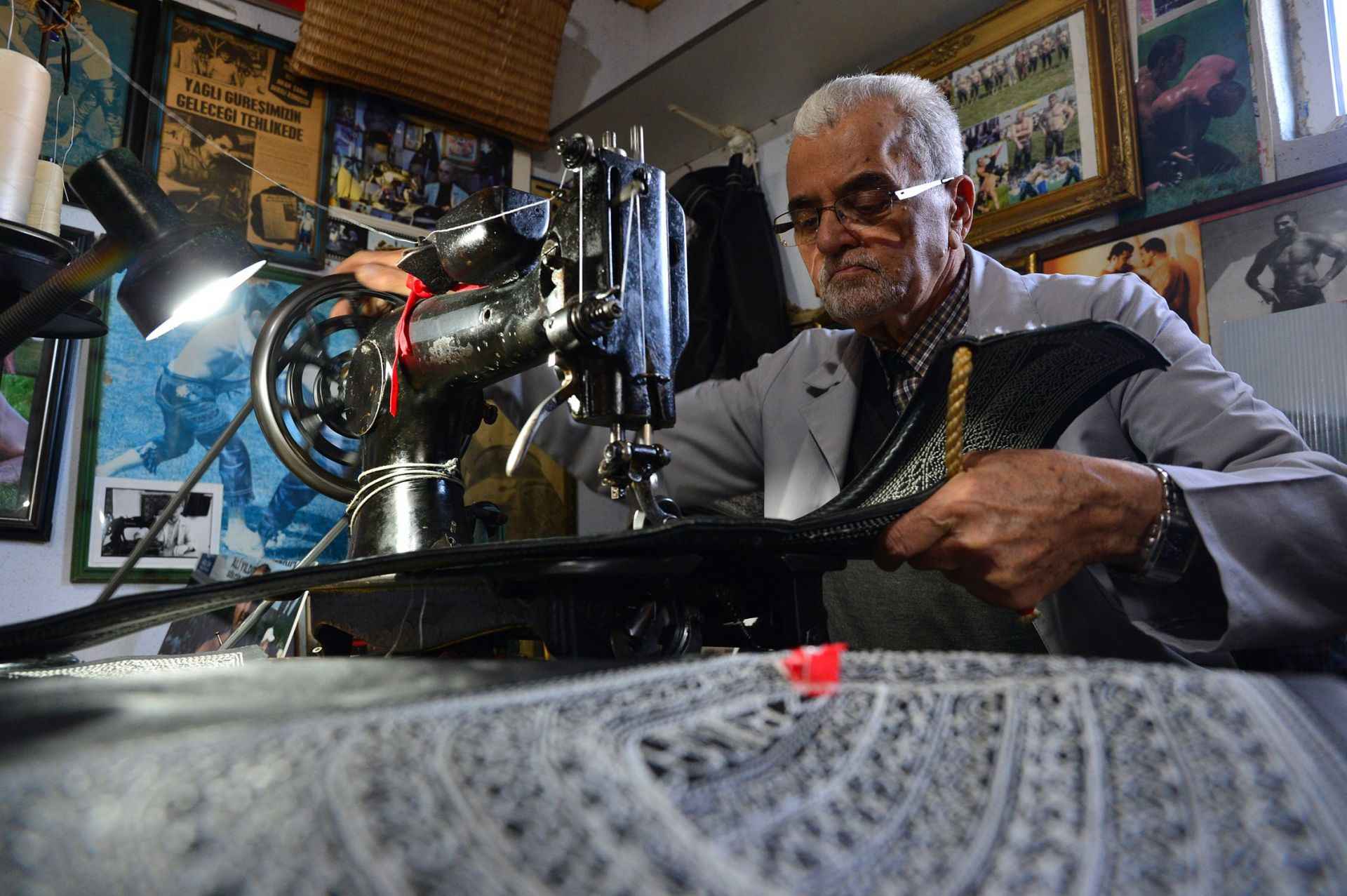 Mesleğini aşkla yapan 77 yaşındaki İrfan Şahin'in büyük ustalıkla işlediği kispetler, çok sayıda pehlivan tarafından kullanıldı.