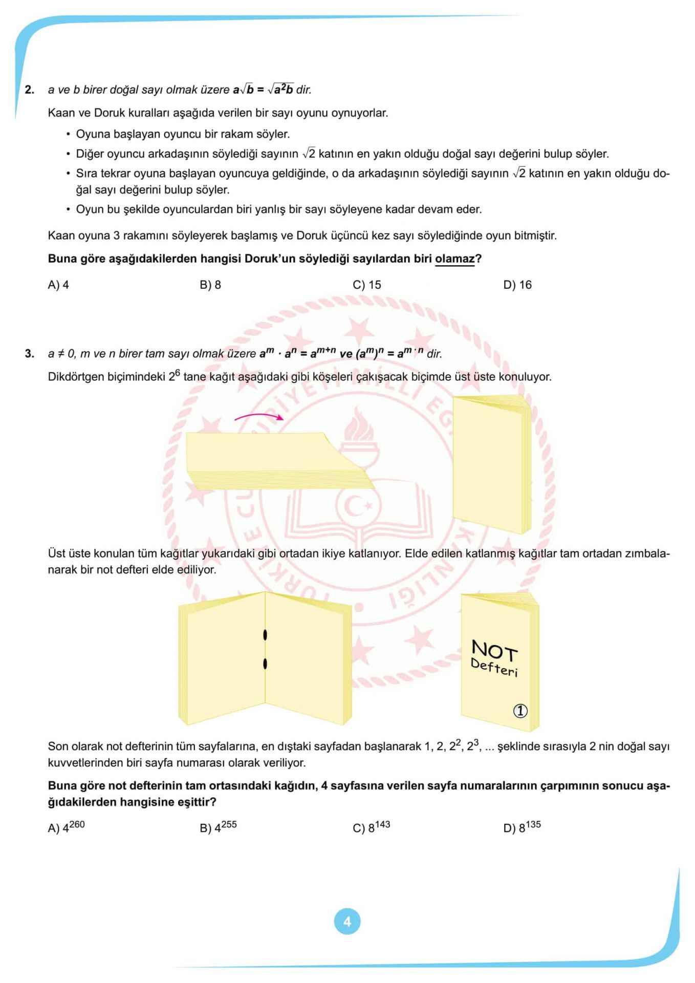 8. sınıf Mayıs ayı örnek soruları 2020 | LGS Mayıs ayı 2. örnek soruları ve cevap anahtarı Sayısal ve Sözle bölüm...