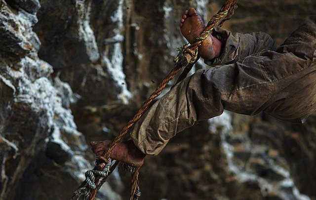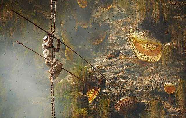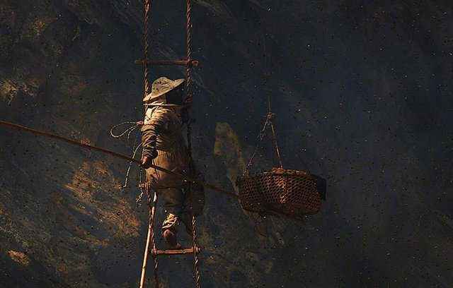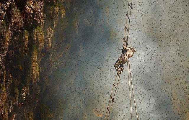 Bu kıymetli balı alabilmek için canını ortaya koyan Nepal köylüleri, dağcıların bile zorlanacağı uçurumlara çıkıp balı alıyor.