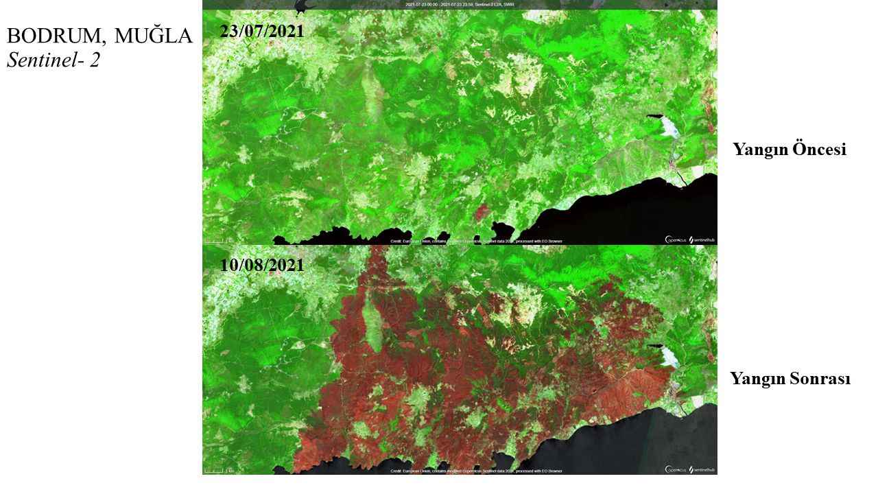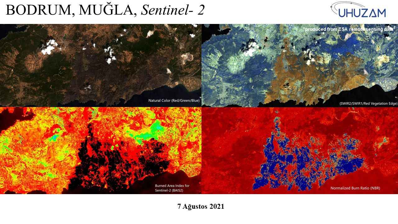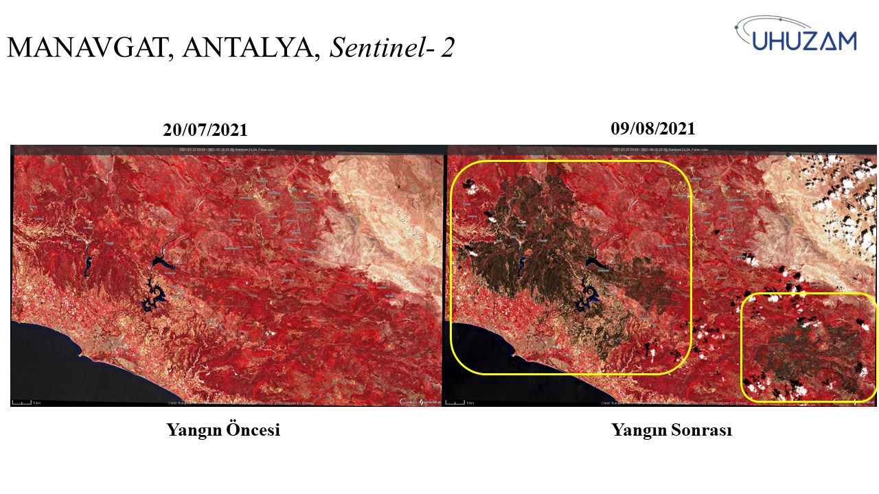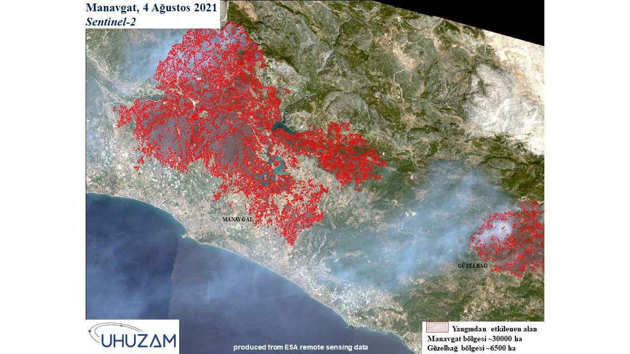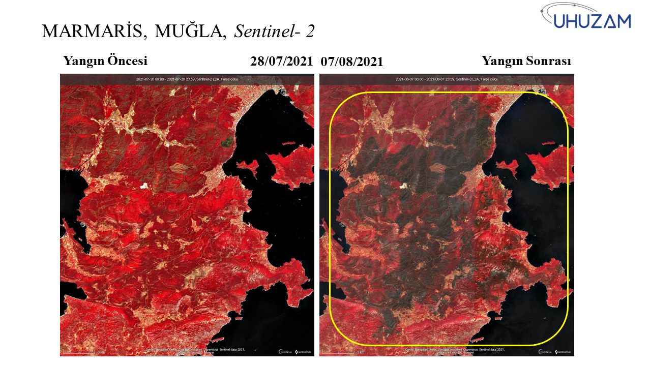 Bu kapsamda, orman yangınların doğaya verdiği zarar, "Spot 6&7", "Worldview 2&3" ve "Sentinel-2" ve ''Landsat 8'' uyduları aracılığıyla görüntülendi. Uzaydan görüntülerle orman yangınlarının doğadaki tahribatının son durumu tespit edildi.