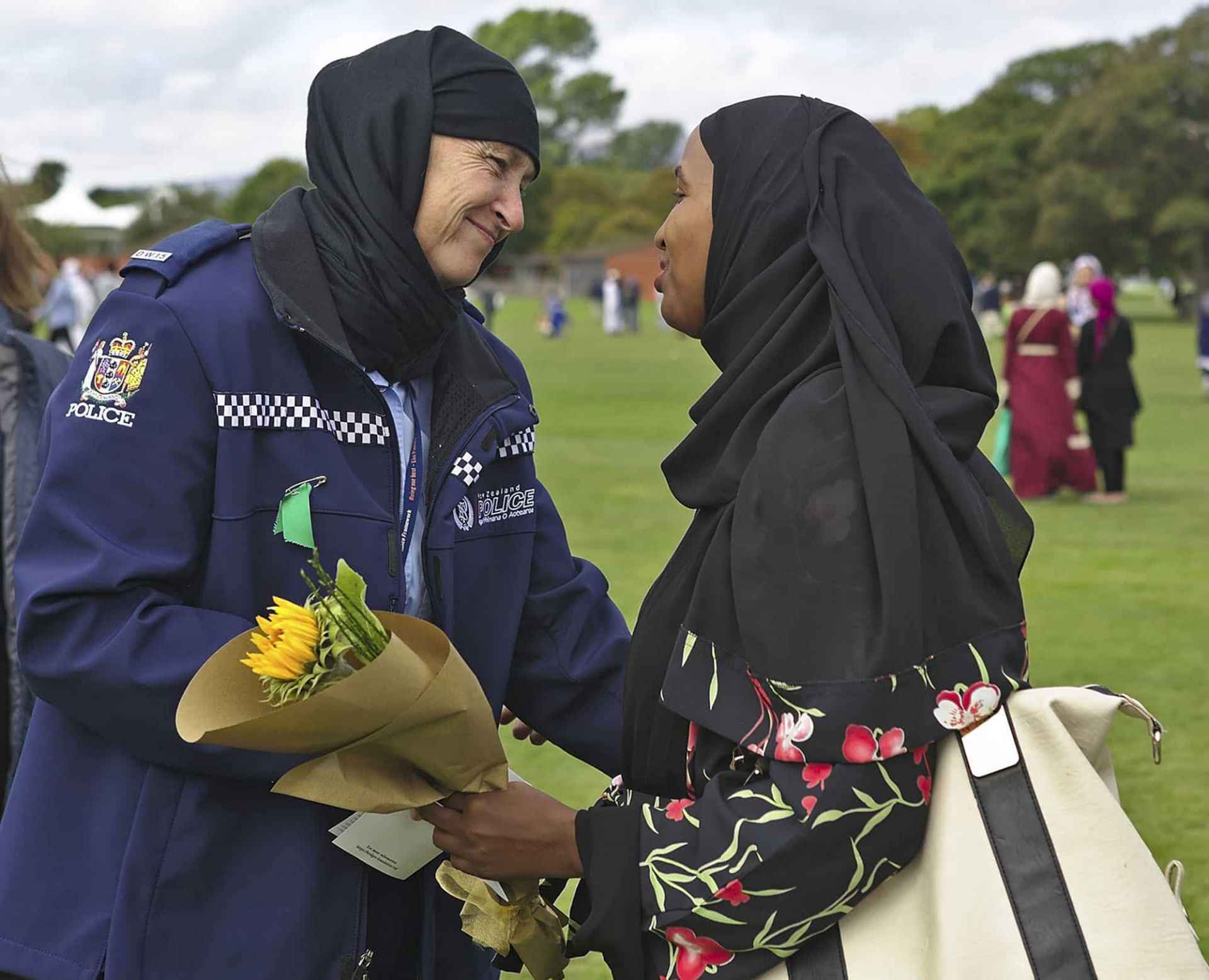 Yeni Zelanda’nın Christchurch'teki iki camiye düzenlenen ve 50 kişinin hayatını kaybettiği, 50 kişinin de yaralandığı terör saldırasının ardından gelen ilk cuma günü Christchurch'teki Hagley Park'ta cuma namazı kılındı. Bir kadın polis memuru da başörtüsü takarak Müslümanlara destek verdi.