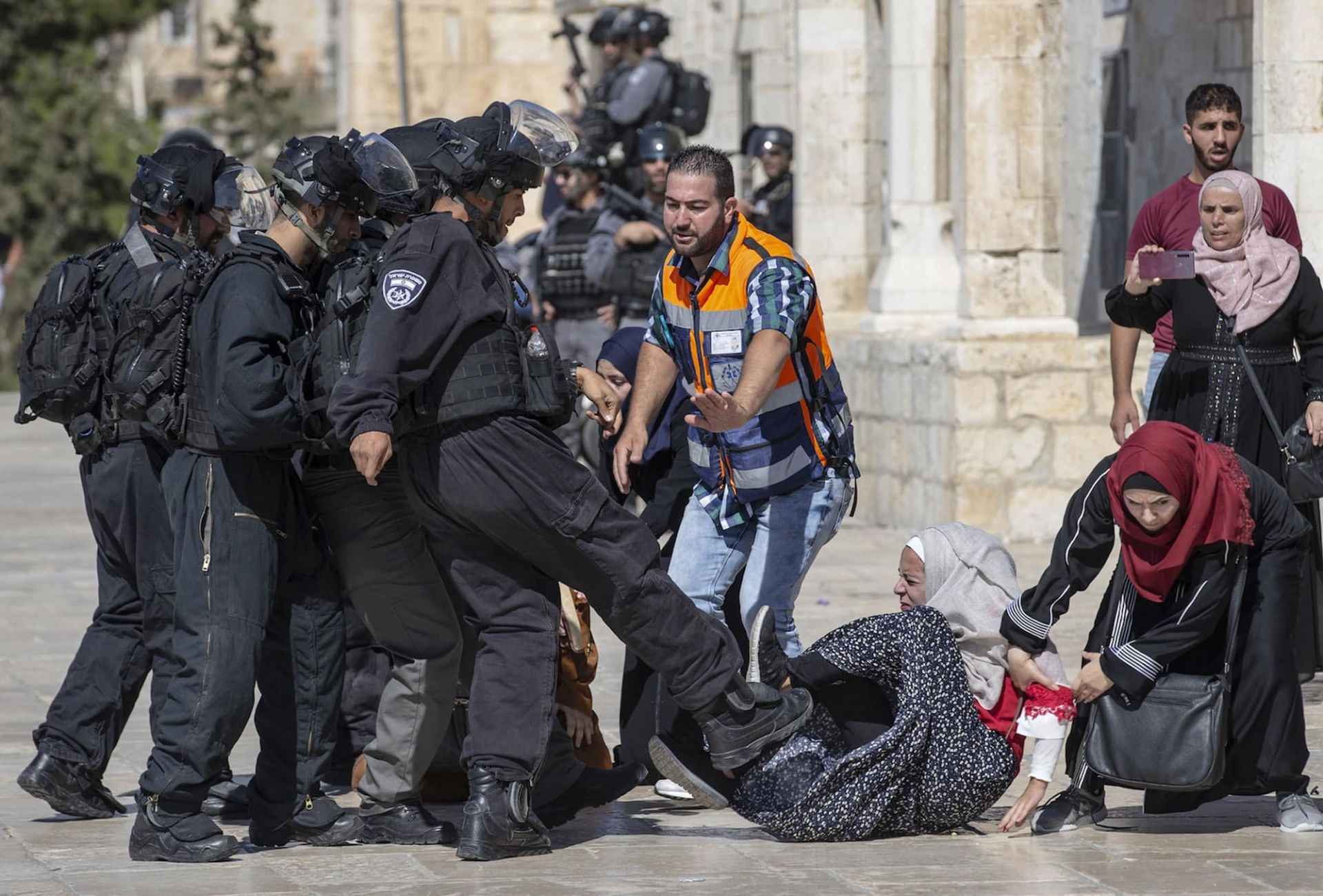 İsrail polisi, fanatik Yahudilerin Mescid-i Aksa'ya baskınlarını engellemek isteyen Filistinlilere Harem-i Şerif'in içinde müdahale etti. Bir İsrail polisi, müdahale sonucu yere düşen Filistinli bir kıza tekme attı.
