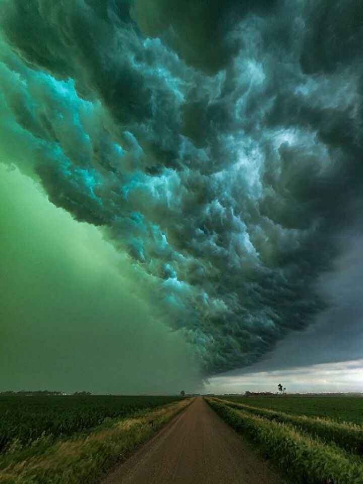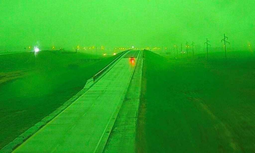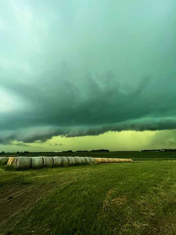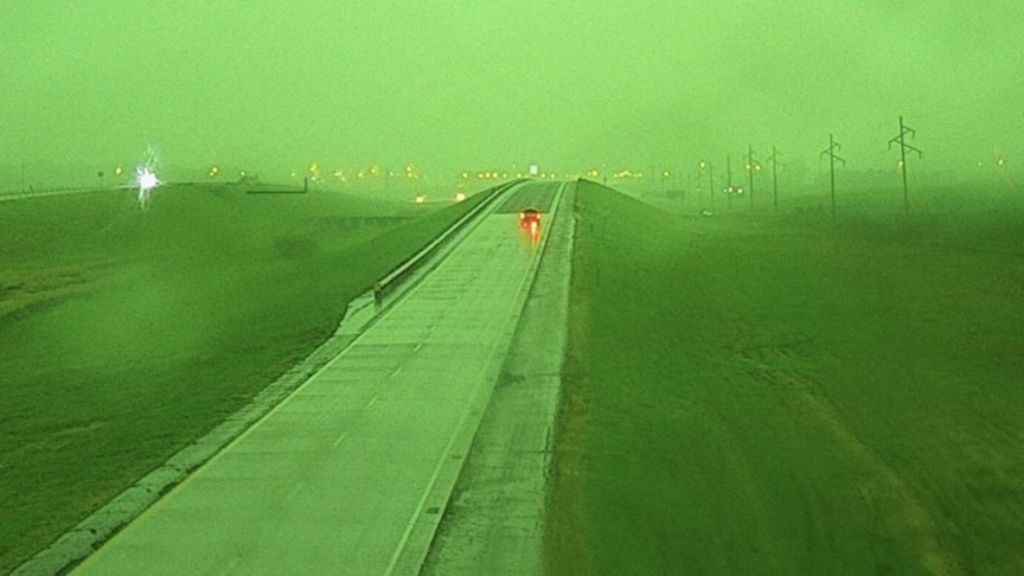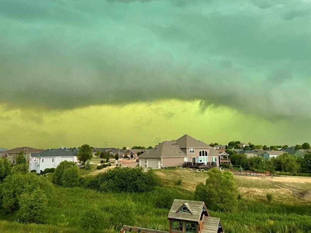 Güney Dakota’da yer alan Sioux Falls’ta 5 Temmuz’da derecho fırtınasının etkili olması ile gökyüzü yeşile döndü.
