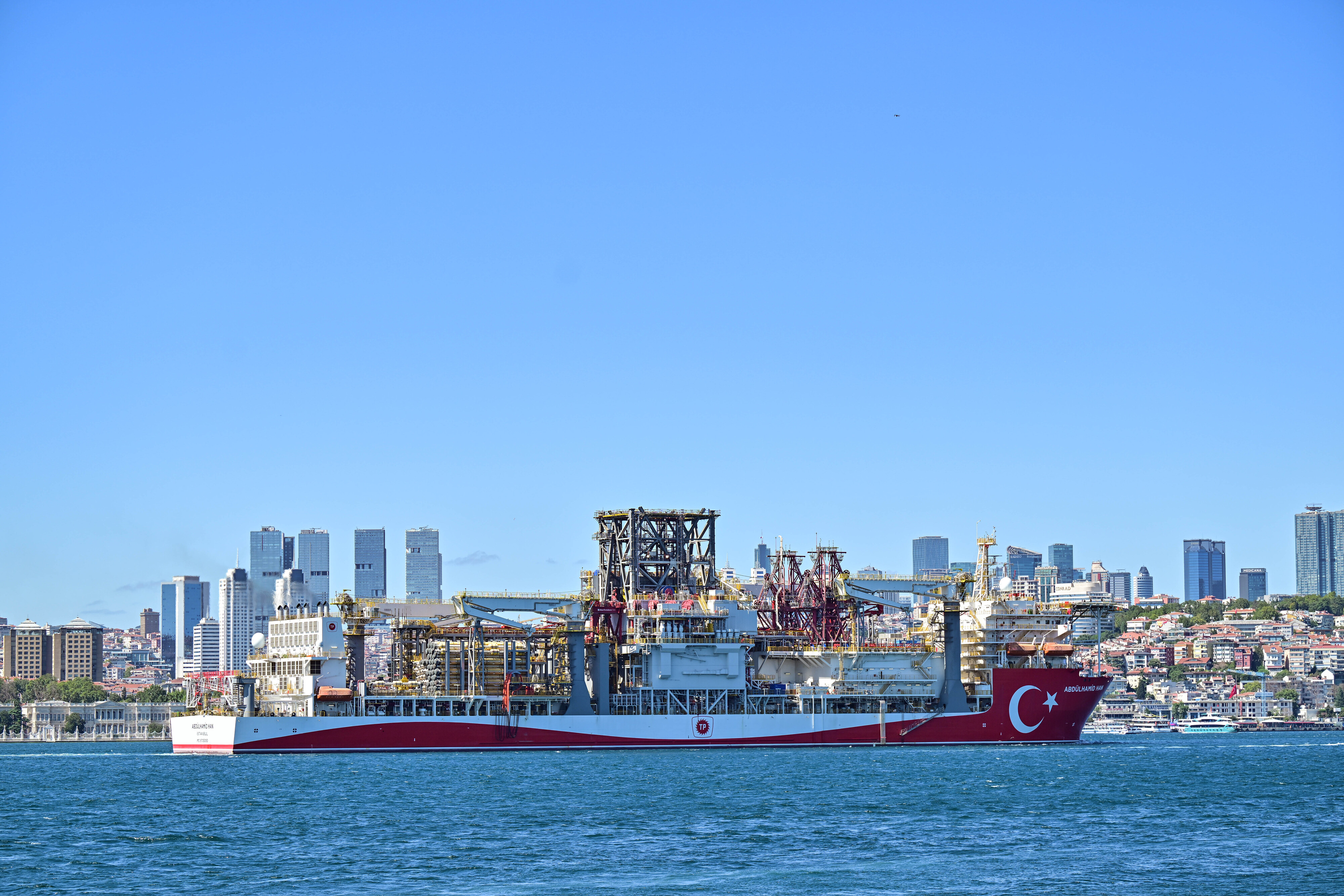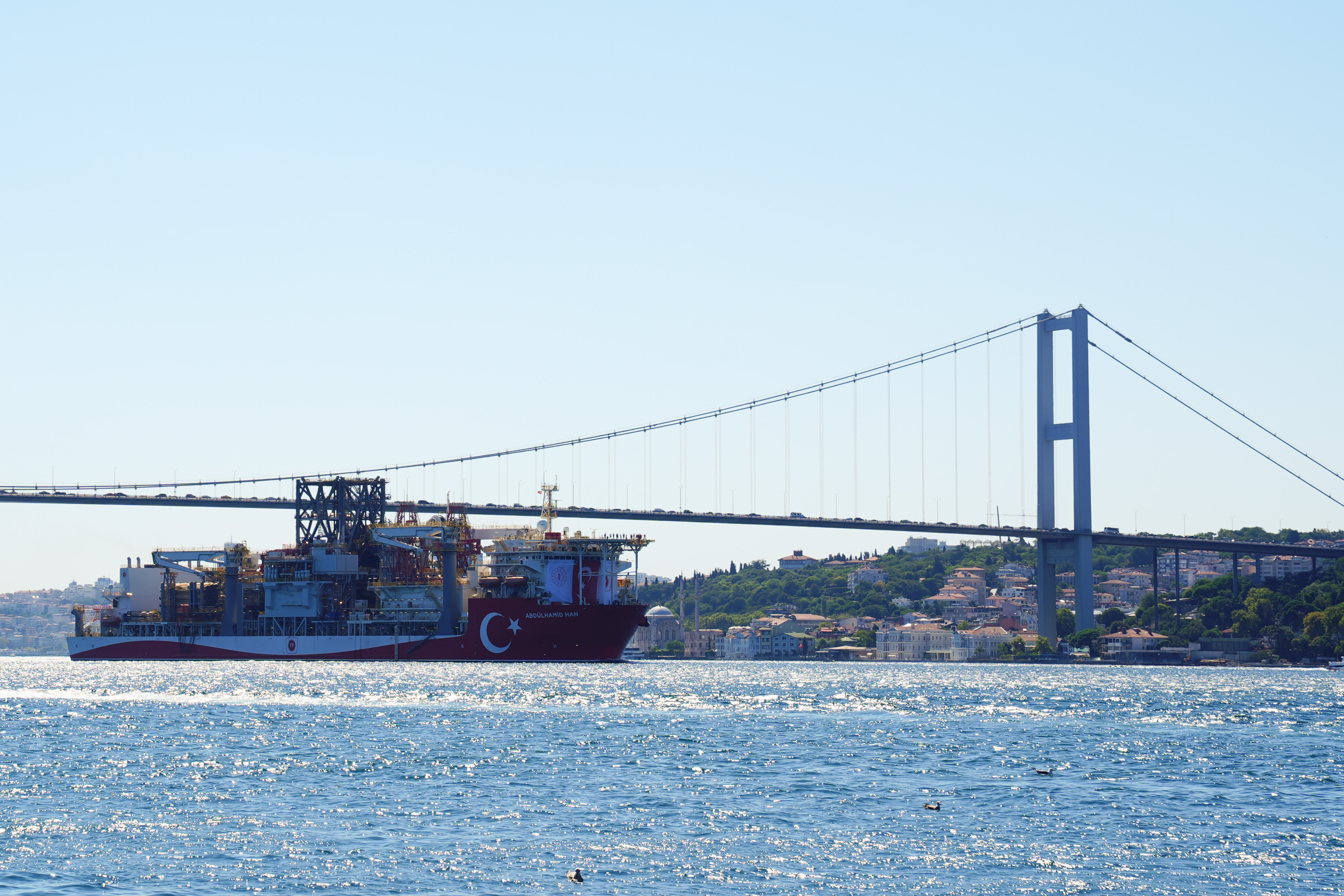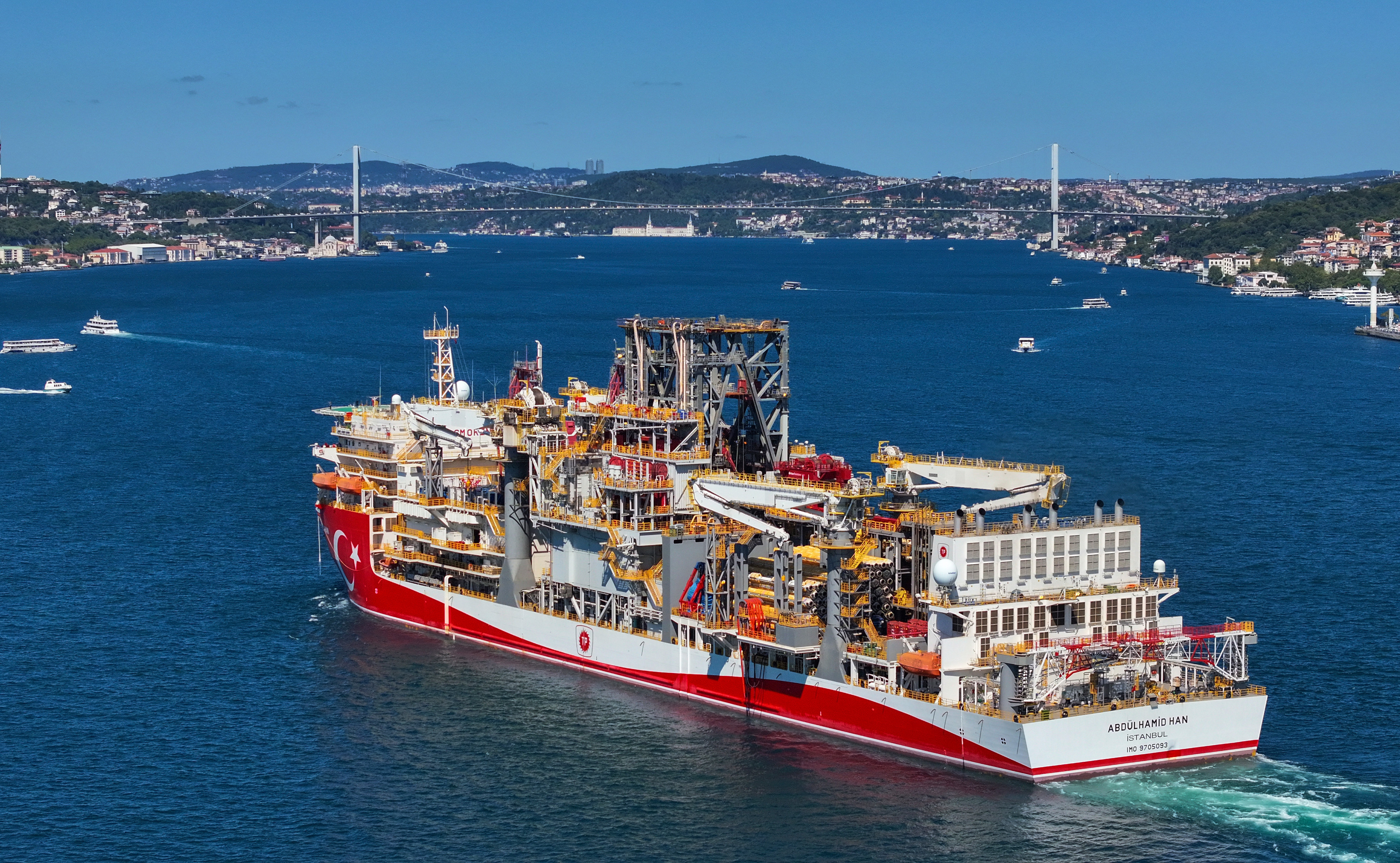 Türkiye'nin denizlerde doğalgaz arama çalışmalarını gerçekleştirmek amacıyla enerji filosuna eklediği, yedinci nesil teknolojiye sahip 238 metre uzunluğunda ve 42 metre genişliğindeki Abdülhamid Han gemisi, Karadeniz'de yeni keşifler yapmak üzere İstanbul Boğazı'ndan geçiş yaptı. Geminin boğazdan geçişi, gurur verici görüntüler ortaya çıkardı.