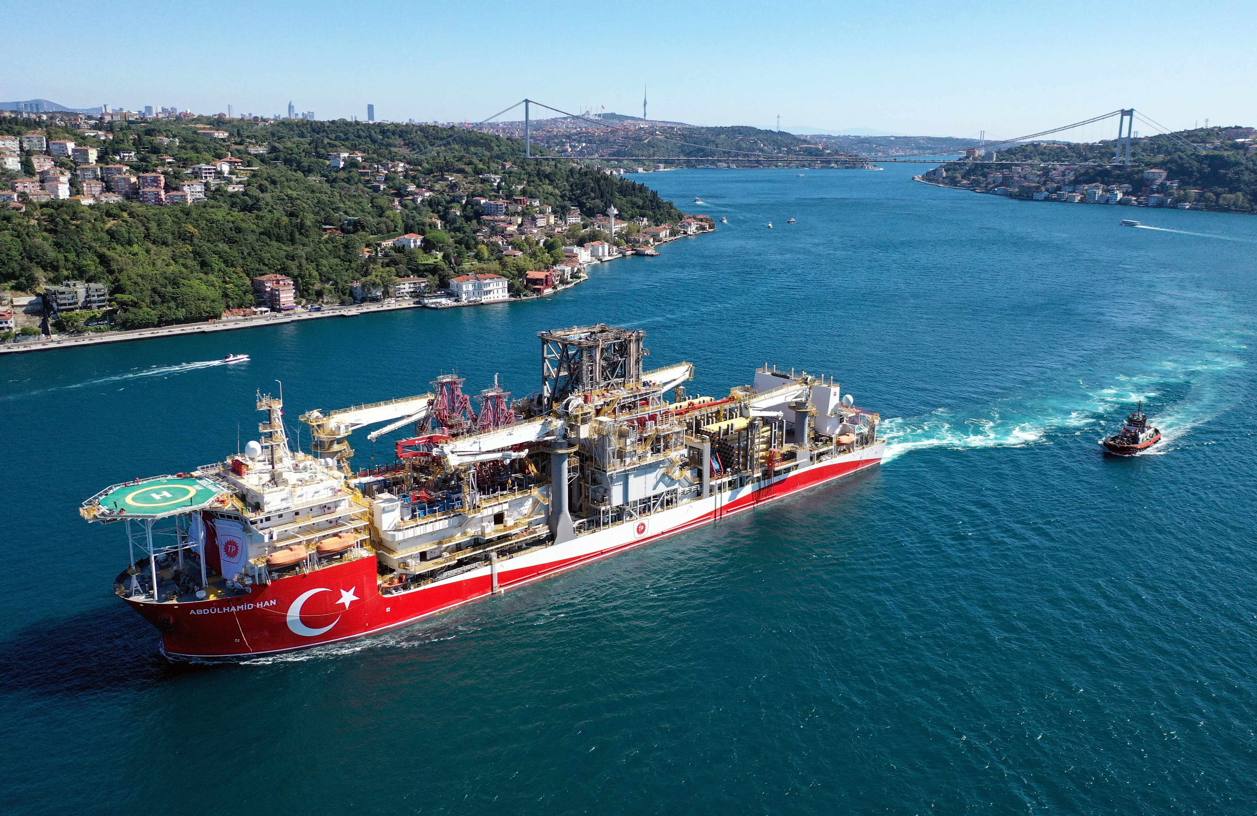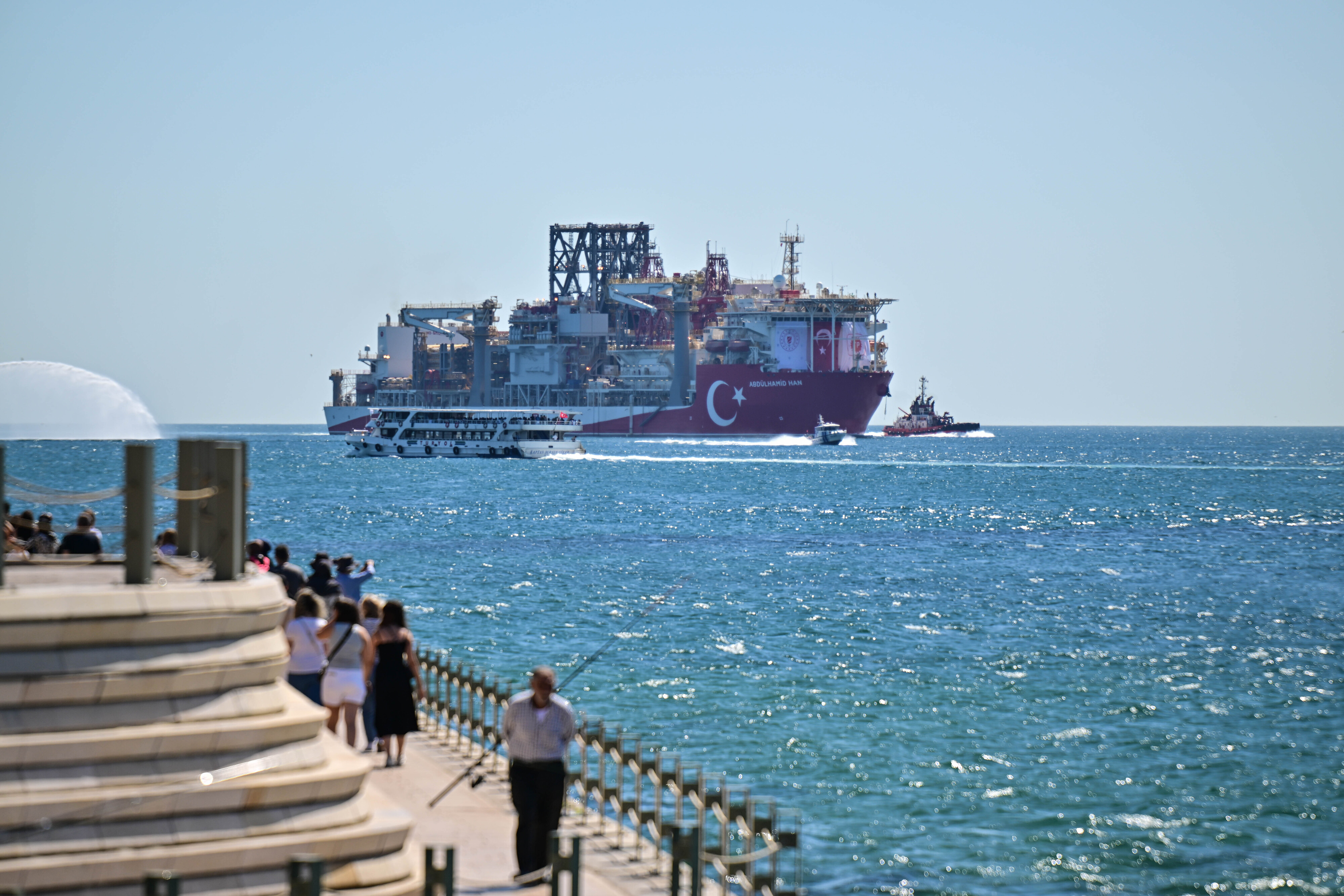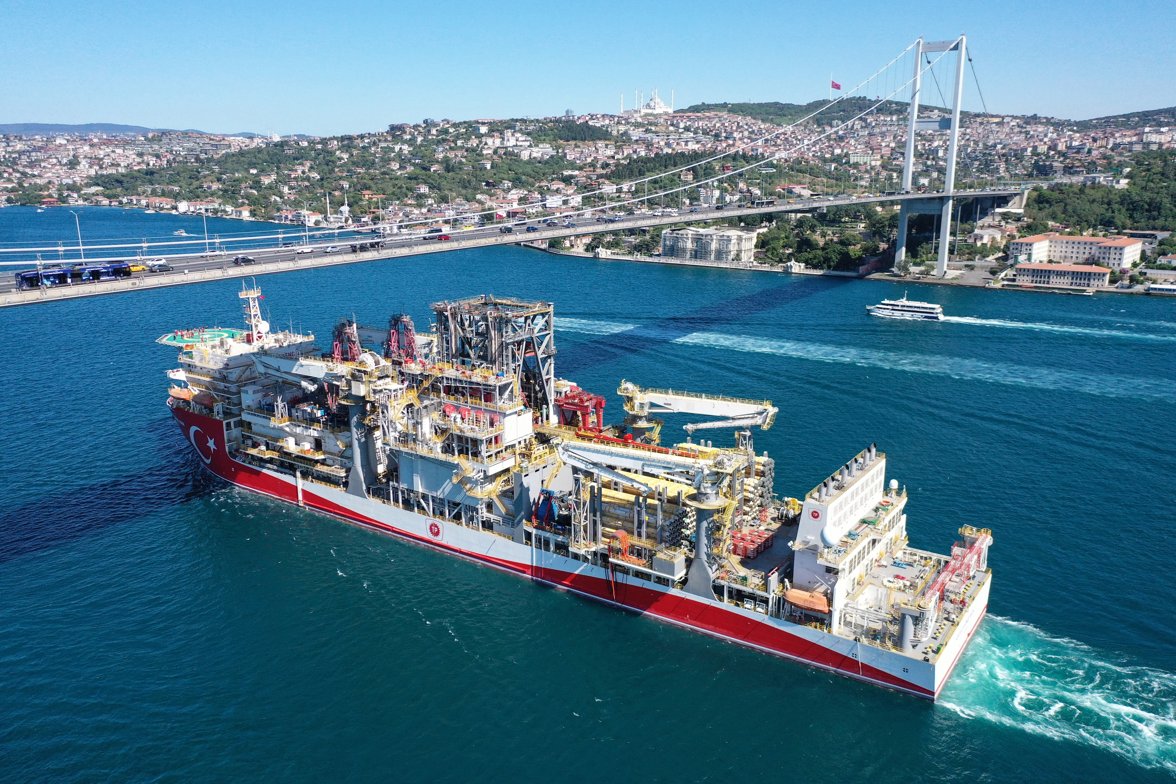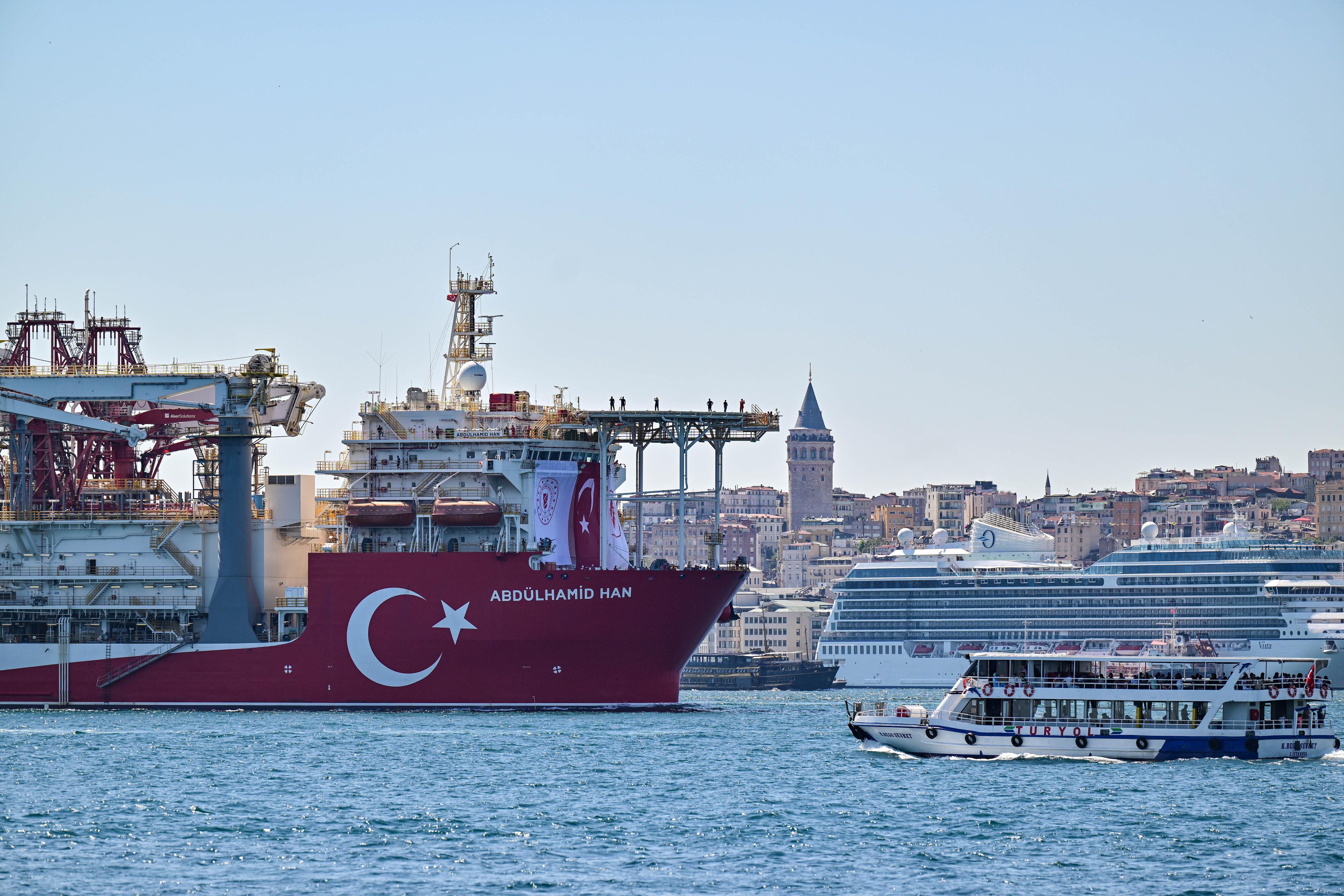 Türkiye'nin denizlerde doğalgaz arama çalışmalarını gerçekleştirmek amacıyla enerji filosuna eklediği, yedinci nesil teknolojiye sahip 238 metre uzunluğunda ve 42 metre genişliğindeki Abdülhamid Han gemisi, Karadeniz'de yeni keşifler yapmak üzere İstanbul Boğazı'ndan geçiş yaptı. Geminin boğazdan geçişi, gurur verici görüntüler ortaya çıkardı.