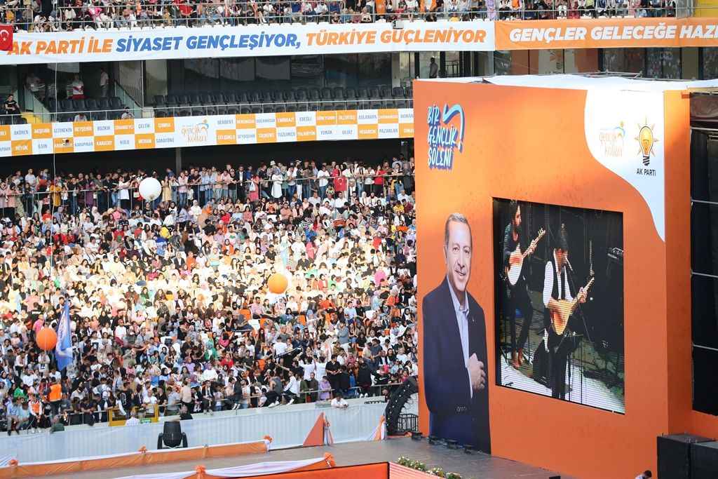 AK Parti’nin organizasyonuyla Adana’da düzenlenen “Bir Gençlik Şöleni” programı kapsamında tüm hazırlıklar tamamlandı ve toplanan kalabalık Cumhurbaşkanı Erdoğan’ı beklemeye başladı.