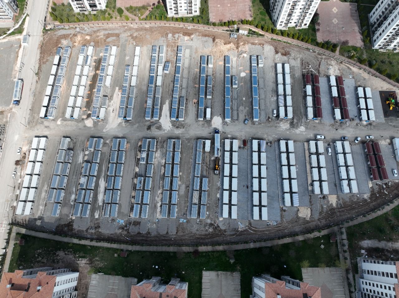 Altınşehir Mahallesi'nde 35 bin metrekarelik alana yerleştirilen 291 konteynerden 100'ünün kurulumu tamamlandı. Çocuk oyun grubu, mescit, derslik, kütüphane, sağlık tesisi, kıraathane, çamaşırhane, aşevi, basketbol sahası, yönetim ofisi ve rehabilitasyon merkezinin de yer alacağı konteyner kente afetzede aileler yerleşmeye başladı.