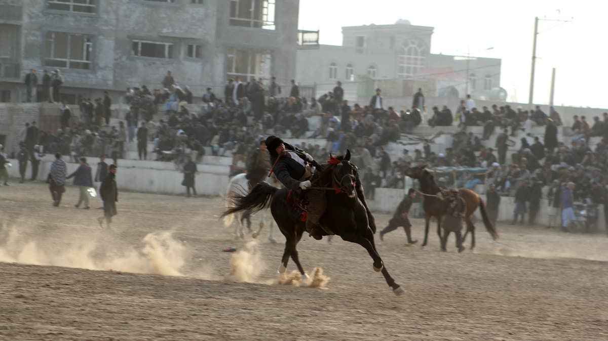 Kış mevsiminin başlamasıyla her cuma oynanan oğlak oyunu, Afganistan'ın kuzeyindeki Mezar-ı Şerif Stadyumu'ndaki izleyicilerde büyük heyecan uyandırıyor.