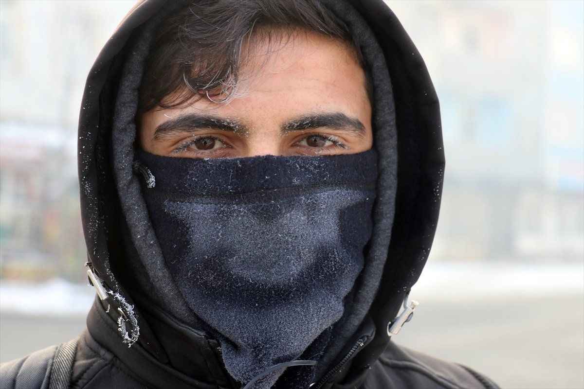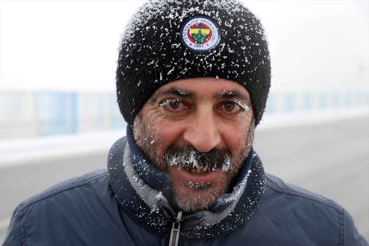 Soğuk havanın yaşamı zorlaştırdığı kentte, sabah işe giden vatandaşların kirpikleri ve bıyıkları kırağıyla kaplandı.