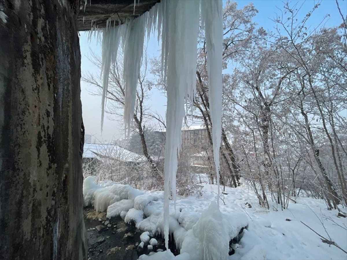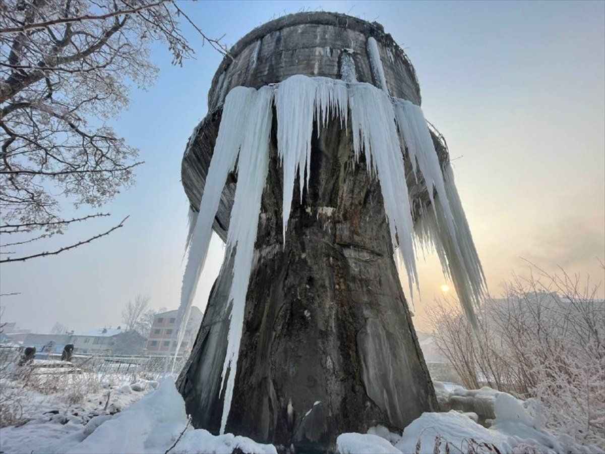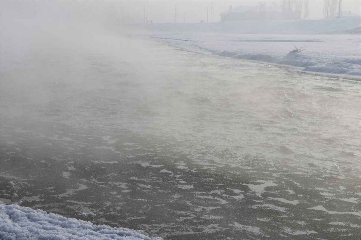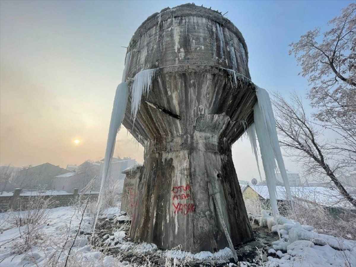 Dere ve nehirlerin yüzeyi ile araç ve binaların camları buz tutarken, şehir mezarlığındaki su deposunun etrafında da yaklaşık 5 metrelik buz sarkıtları görüldü.
