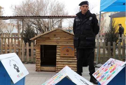 "Ağrı'da hava kışın sıfırın altında 35 dereceyi görüyor. Soğuk nedeniyle sokak hayvanlarının üşüdüğünü görüyorum. Bu yüzden müdürlerimizle görüşüp böyle bir proje yapmaya karar verdim. Sayın Valimiz Osman Varol ve İl Emniyet Müdürümüz Nihat Özen öncülüğünde bu projeyi gerçekleştirdik. Tamamen atık malzeme kullandık. Strafor, kırık polis kalkanları ve meyve kasalarını birleştirerek bu şekilde proje gerçekleştirdik. 5 kedi ve bir köpek evinin yapımı yaklaşık bir buçuk ayımızı aldı. Önümüzdeki aylarda da bu sayıyı artıracağız. Evlerin içi yalıtımlı malzeme ve kalkanlarla kaplı olduğu için soğuğa karşı dayanıklıdır."