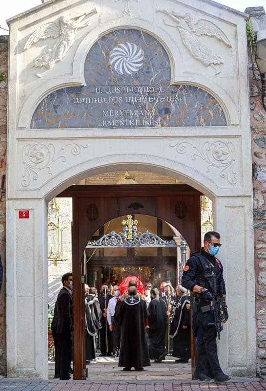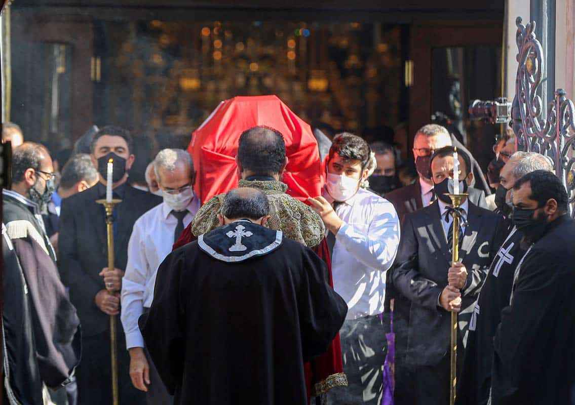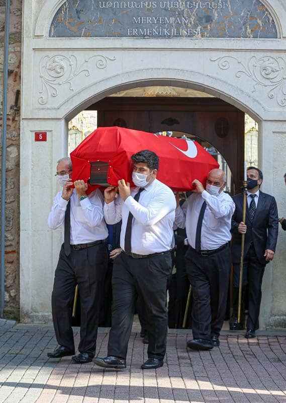 Mide rahatsızlığı nedeniyle bir süredir tedavi gördüğü hastanede vefat eden gazeteci-siyasetçi Markar Esayan'ın Türk bayrağına sarılı naaşı, dini törenin düzenleneceği Kumkapı Meryem Ana Patriklik Kilisesi'ne getirildi. Tören çan sesi ile başladı.