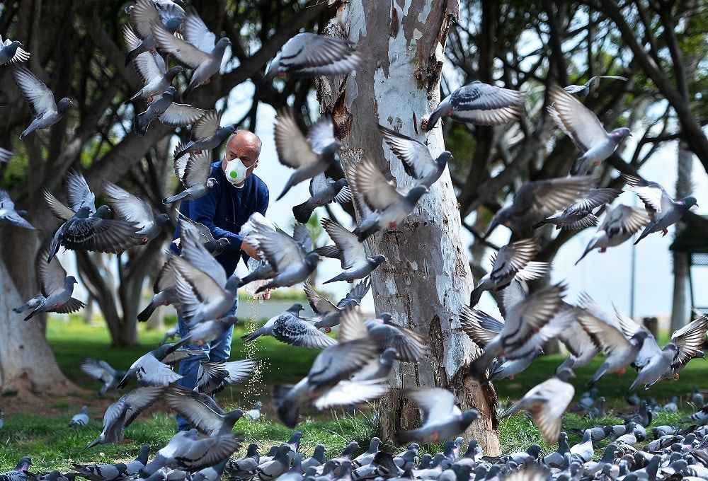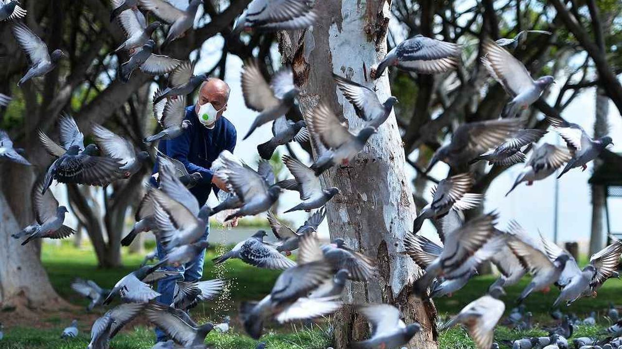 Mersin'de, yeni tip koronavirüs (Kovid-19) tedbirleri kapsamında "evde kal" çağrısına büyük oranda uyulması sayesinde, normalde yoğunluğun yaşandığı sahil şeridi güvercinlere kaldı. Koronavirüsle mücadele günlerinde aç kalan güvercinlere ise bir vatandaş yem verdi.