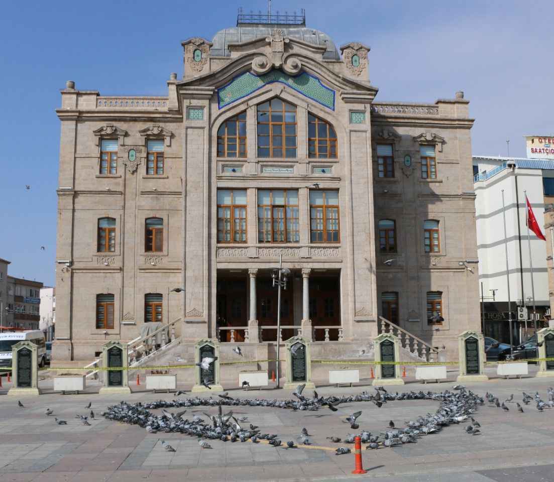 AKSARAY´da sokağa çıkma kısıtlamasının birinci gününde boş kalan meydandaki güvercinleri, belediye çalışanları besledi.
