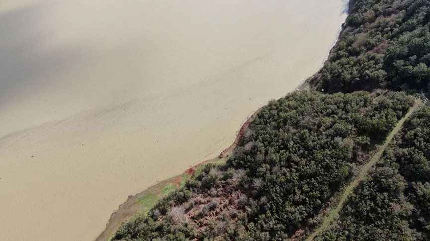 Doluluk oranın hızla yükseldiği ve bugün yüzde 53'e kadar çıktığı Alibeyköy Barajı'nda suyun rengi kahverengine döndü.