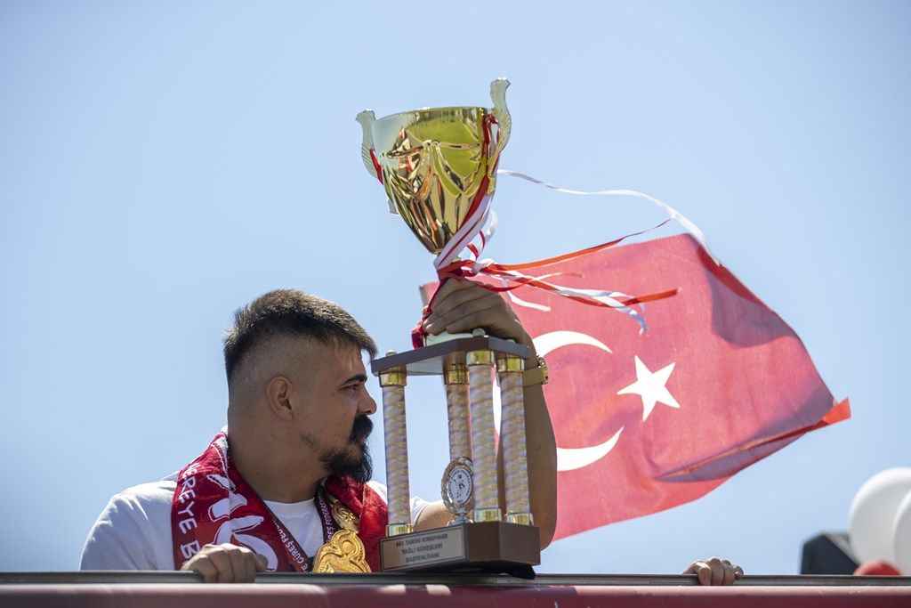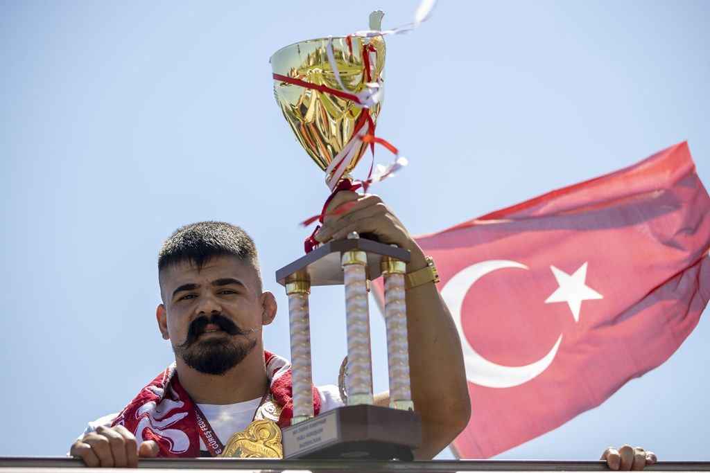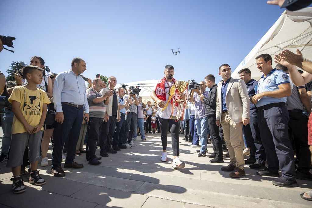 Türkiye’nin yeni başpehlivanı Cengizhan Şimşek, memleketinde coşkulu kalabalık tarafından karşılandı.