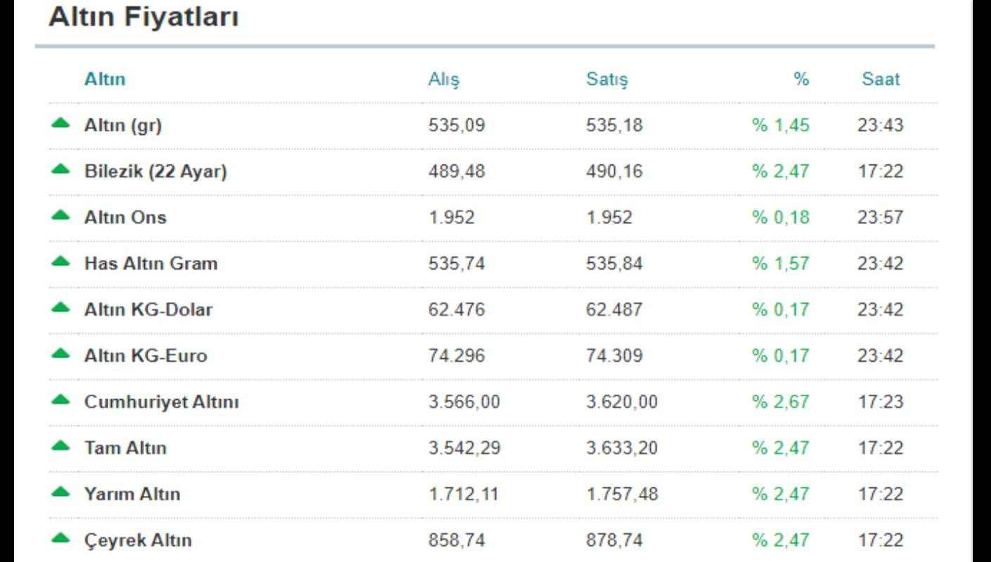 Güncel Altın Fiyatları:
