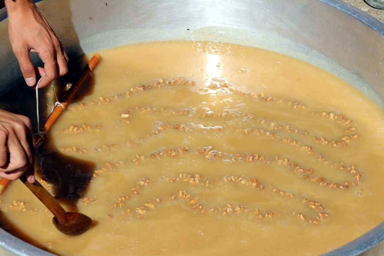 Elde edilen bulamaca önceden ipe dizilen cevizler batırıldıktan sonra güneşte kurumaya bırakılıyor. Orcik, bu işlemin üç kez tekrarlanmasının ardından tüketime hazır hale geliyor.