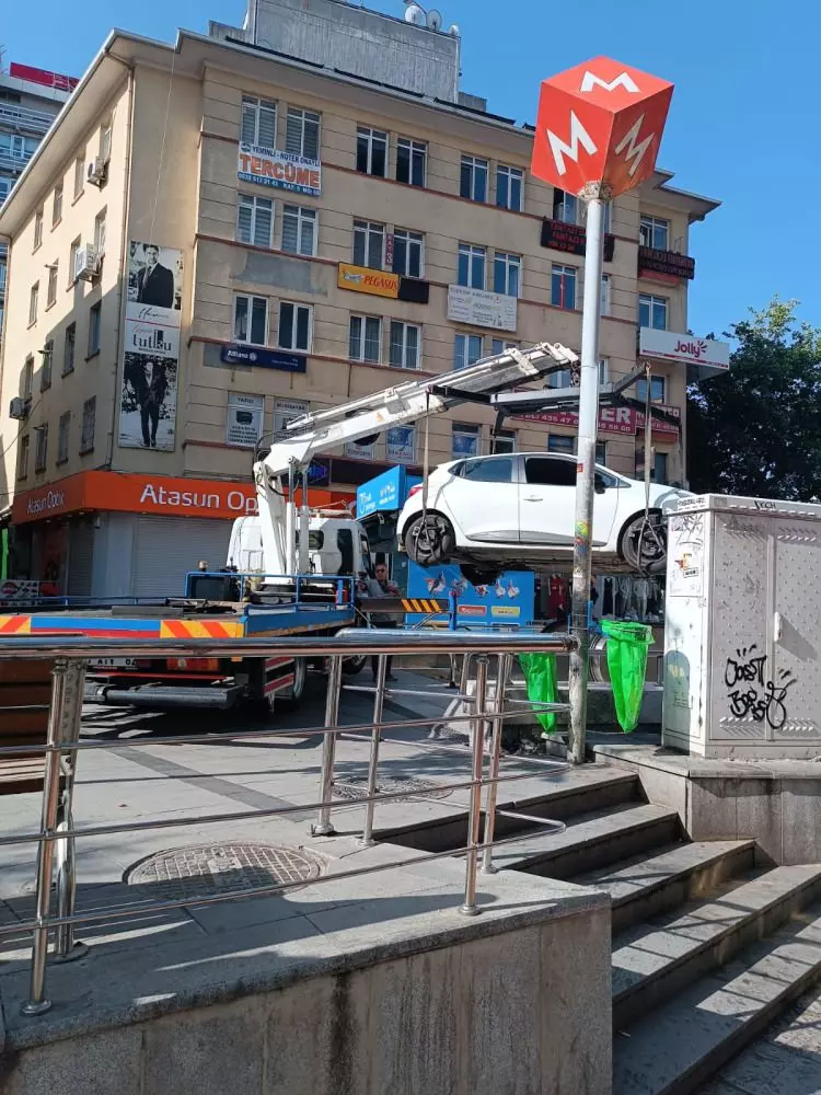 Henüz belirlenemeyen bir sebeple 06 GE 3897 plakalı bir araç sürücüsü, aracın kontrolünü kaybederek Kızılay’da bulunan Kızılay metro istasyonunun merdivenlerinden aşağı uçtu.