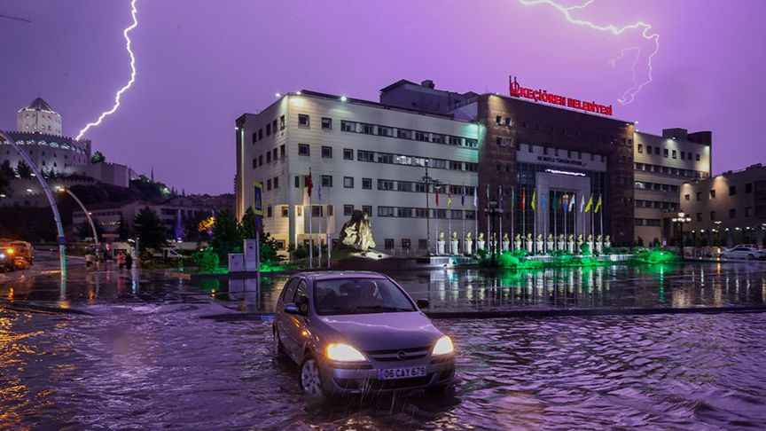 Kentte akşam tekrar başlayan kuvvetli yağışın ardından bazı cadde, bulvar ve sokaklardaki mazgalların tıkanmasıyla yollar yağmur suyuyla doldu.