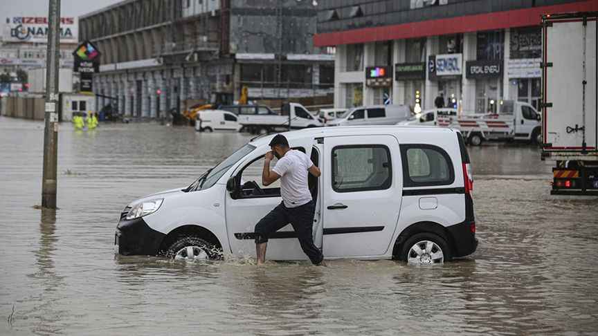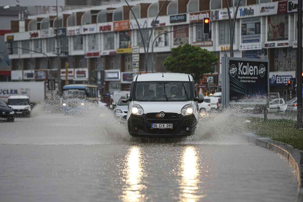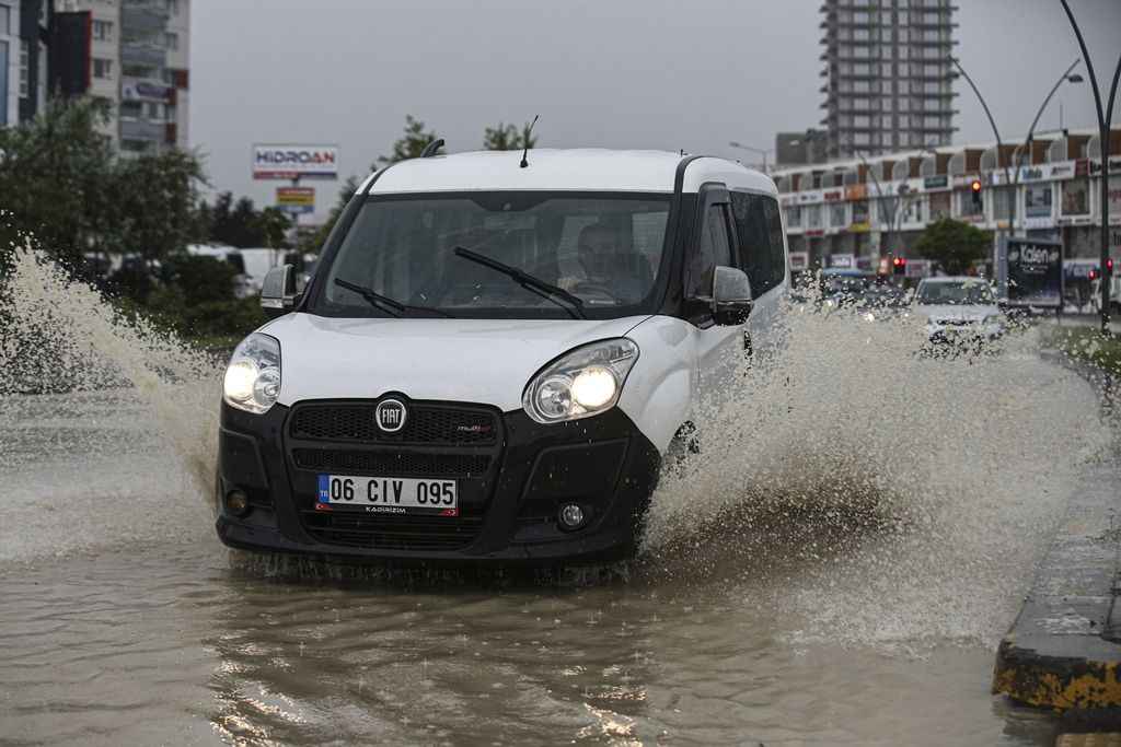Ankara'da akşam saatlerinde etkili olan sağanak, yaşamı olumsuz etkiledi. \n