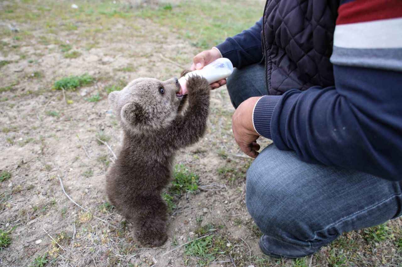Üç saat aralıklarla özel diyet uygulanarak beslenen ve sıcak bir ortamda bakılan ayı yavrusu, sürekli veteriner hekimlerin gözetiminde tutuluyor, biberonla besleniyor.