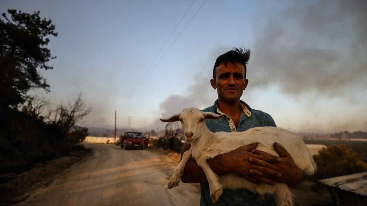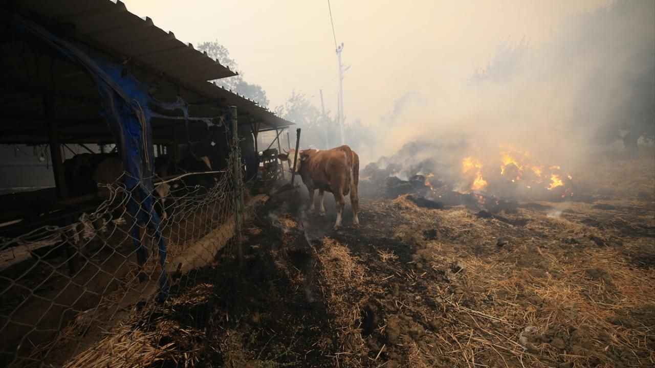 Bazı vatandaşlar, yangından hayvanlarını kurtarmak için mücadele etti.