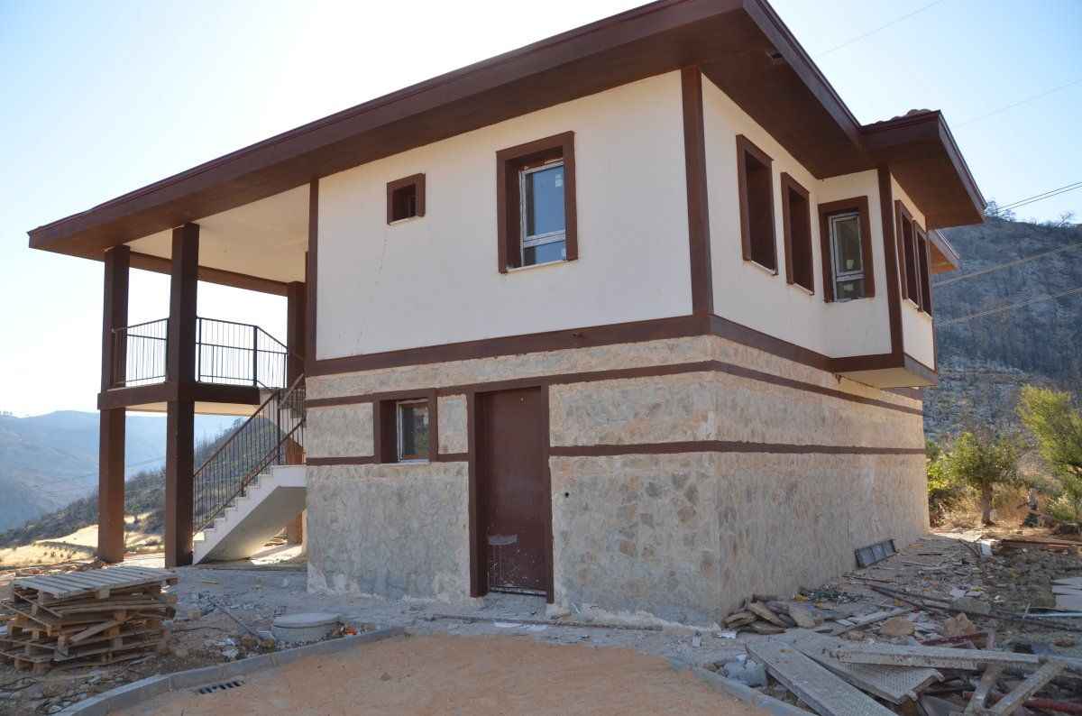 Evler 3+1 ve 2+1 iki katlı olarak yöresel mimariye uygun olarak yapıldı.