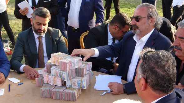 Yemek ikramının ardından geçilen takı töreninde damada 4 milyon 123 bin TL nakit para, geline ise 3 kilo altın takılarak son yılların en çok takı takılan düğünü olarak hafızalara kazındı.