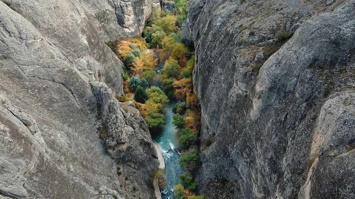 Kanyona ailesiyle birlikte gezmeye gelen Veysel Sülü maneviyat başta olmak üzere doğa ile iççice vakit geçirmek için özellikle sonbahar mevsimi tercih ettiğini söyledi.