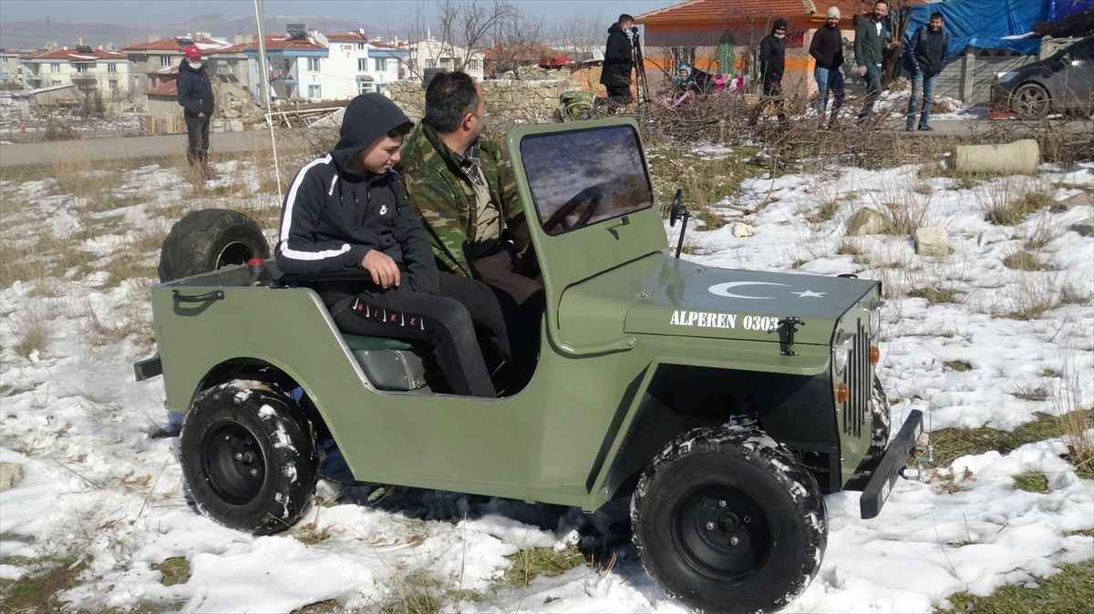 Dinarlı, oğlunun isteği 250 cc ve benzinli arazi aracını, iş yerindeki atık malzemeleri kullanarak yaptığını söyledi.