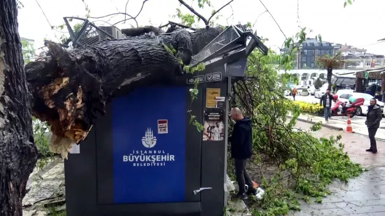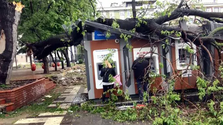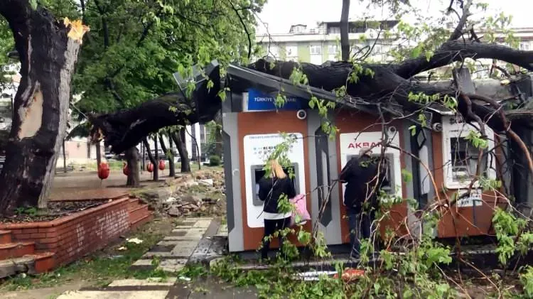 Ağacın kırıldığı bölgede park edilen bir otomobil de küçük çizikler dışında hasar görmedi. Büyük şans eseri ölen veya yaralanan olmayan olayda ATM’nin hemen üzerinde oldukça büyük ağaç gövdesinin üzerlerine düşme tehlikesine aldırmayan 3 kişi para çekti. Ağaç yaklaşık yarım saatlik çaba ile kesilerek götürüldü.