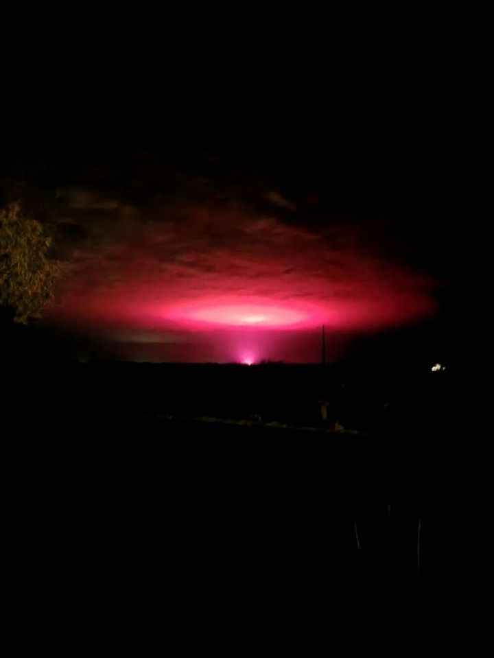 Konuyu araştıran uzmanlar, gökyüzündeki pembe rengin Cann Group İlaç Şirketi tarafından işletilen bir kenevir laboratuvarındaki ışıklardan kaynaklandığını açıkladı.