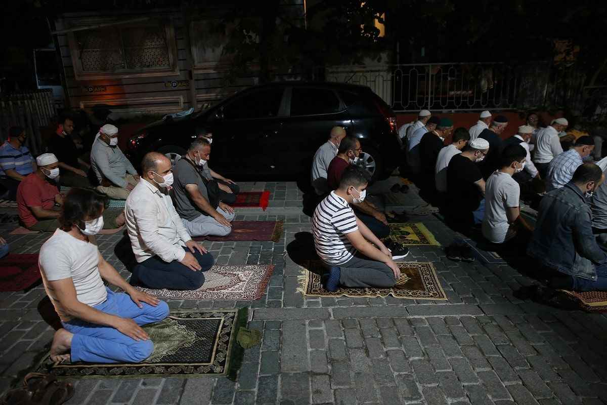 Ellerinde seccadelerle gelen vatandaşlar caminin bulunduğu bölgedeki güvenlik noktalarında durduruldu.