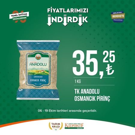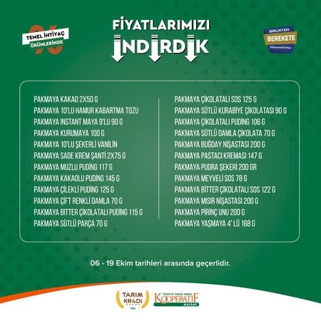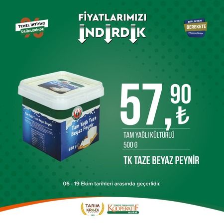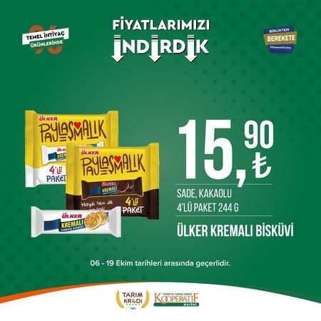 Tarım Kredi market 6 Ekim ile 19 Ekim tarihleri arasında seçili ürünlerde büyük indirime gidildiğini açıkladı. Büyük indirimin başladığını duyuran Tarım Kredi marketleri Ayçiçek yağı fiyatı ile dikkat çekti. İşte Tarım Kredi marketlerindeki indirimli ürünler..