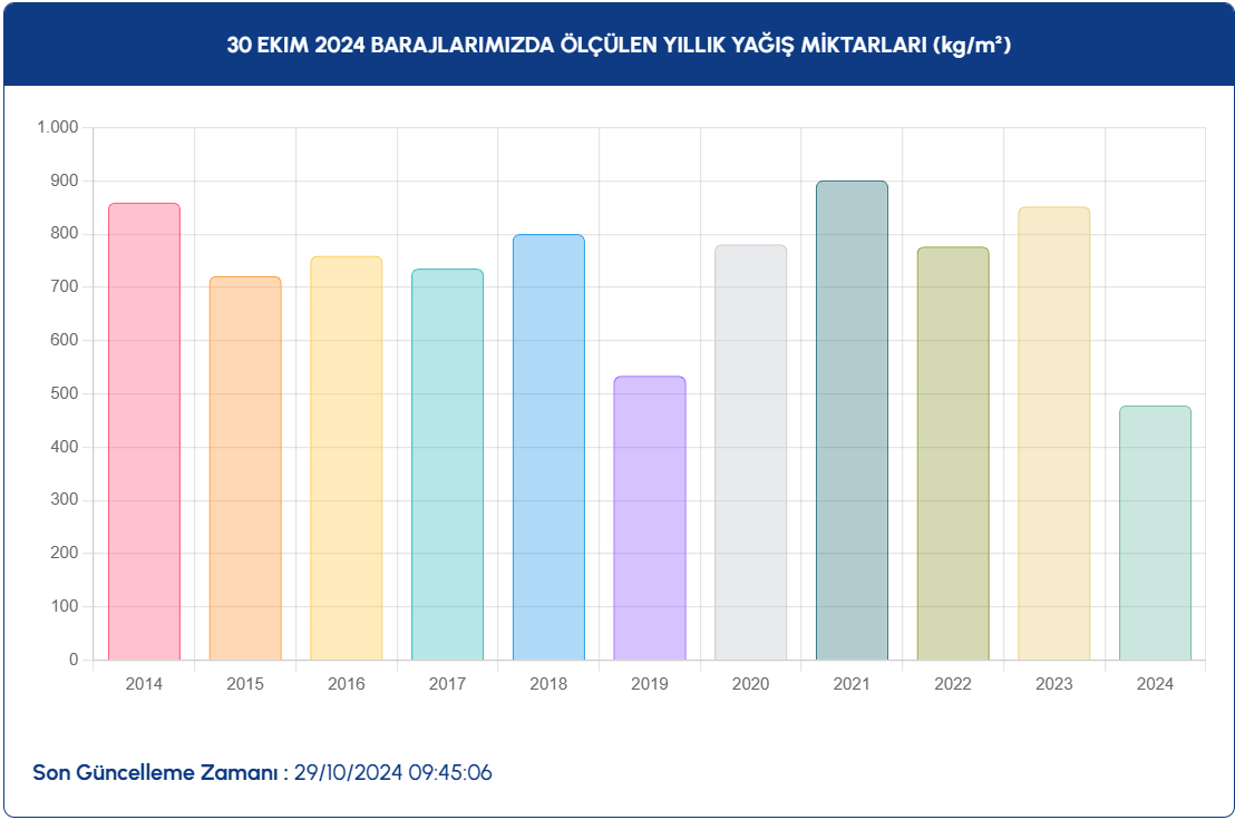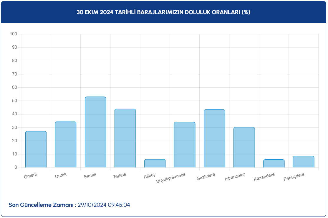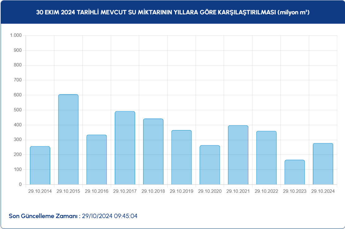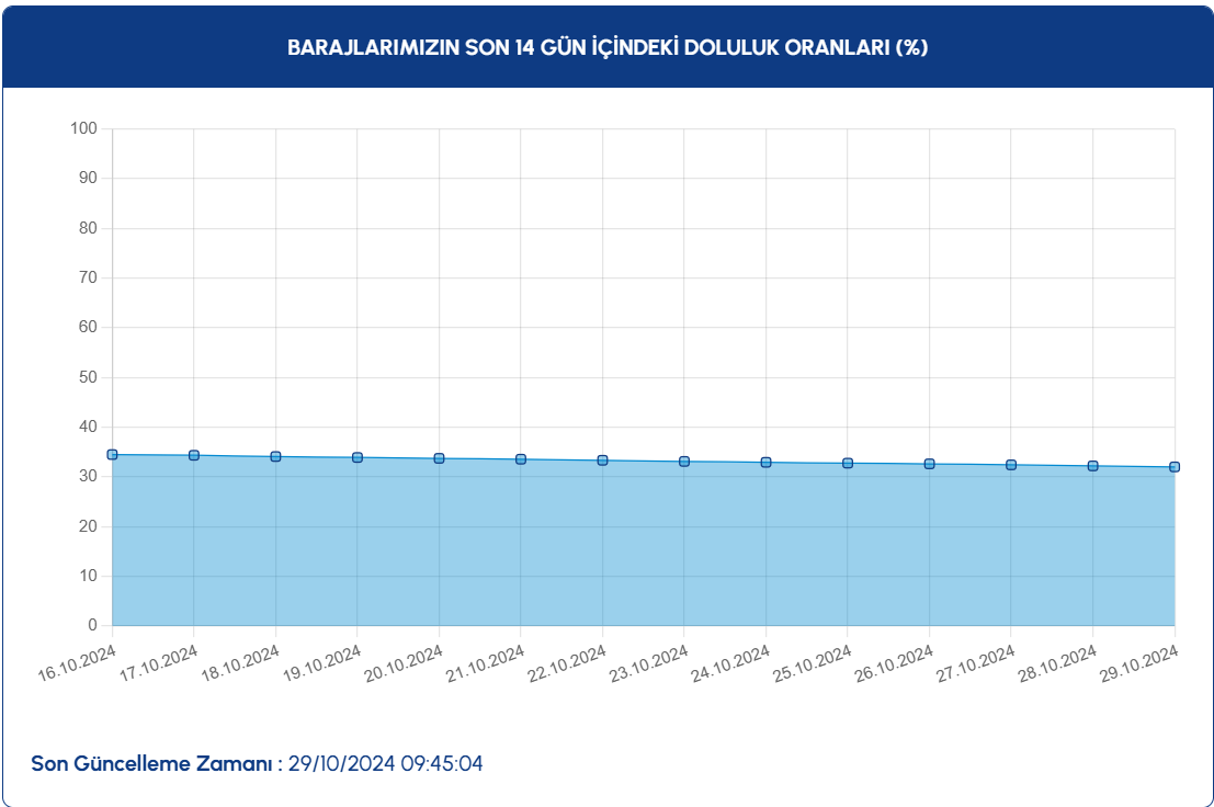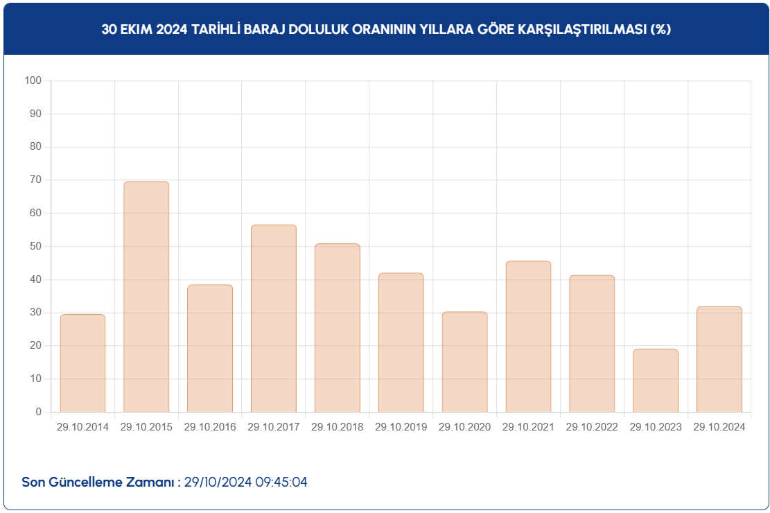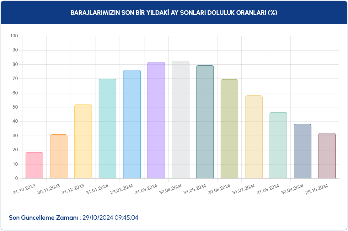 Son bir yıldaki ay sonları doluluk oranlarına göre geçen yıl ekim sonu oranı karşılaştırıldığında daha yüksek olduğu görülüyor.