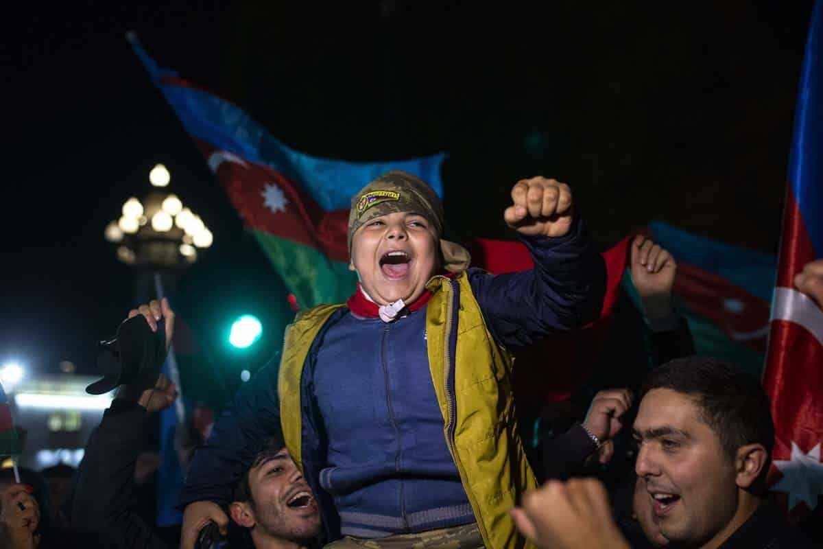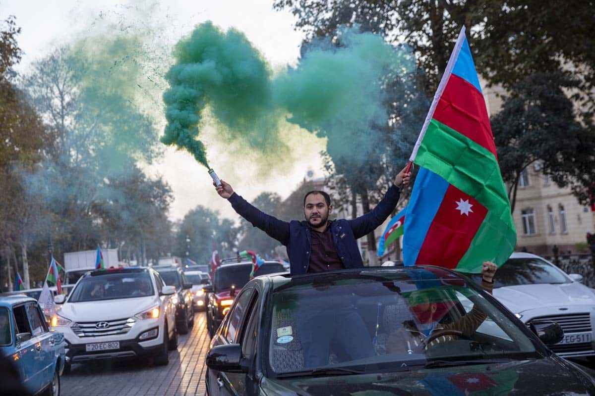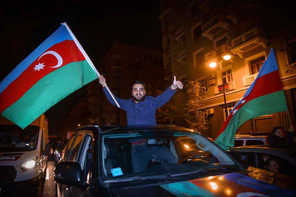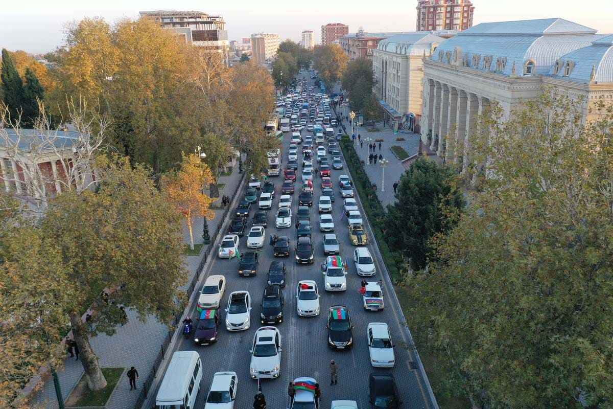 Azerbaycanlılar, Cumhurbaşkanı İlham Aliyev'in ulusa sesleniş konuşmasında, Rusya'nın arabuluculuğunda yapılan anlaşmanın "Azerbaycan için zafer, Ermenistan için ise yenilgi" anlamına geldiğini belirtmesinin ve Ermenistan güçlerinin Laçın, Kelbecer ve Ağdam illerini ay sonuna kadar boşaltacağı müjdesini vermesinin ardından sokaklara akın etti.