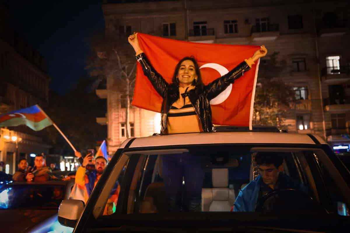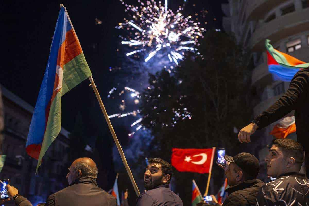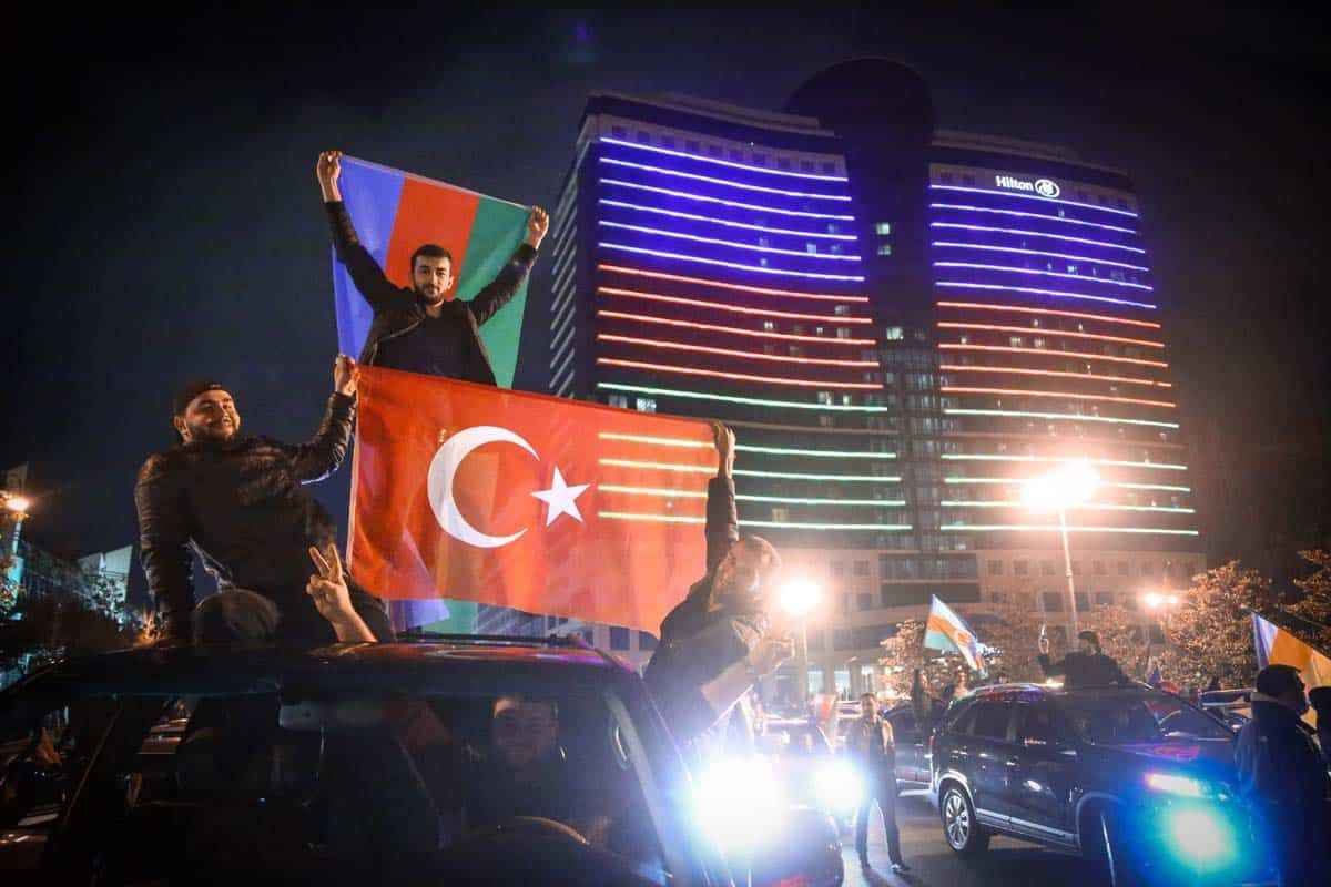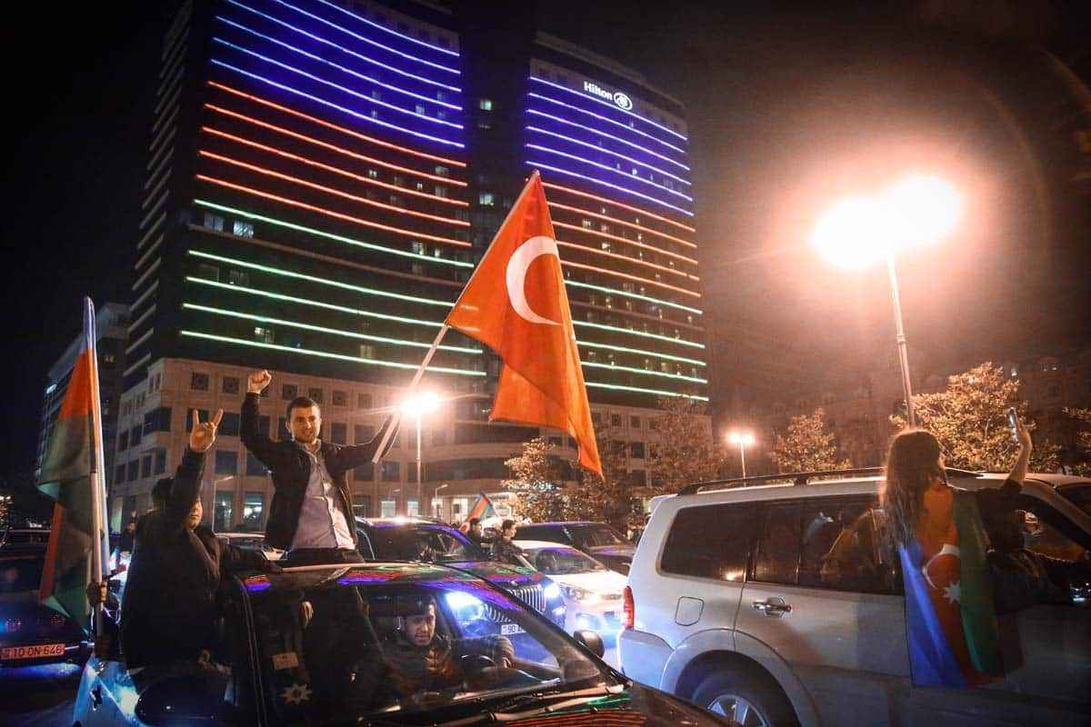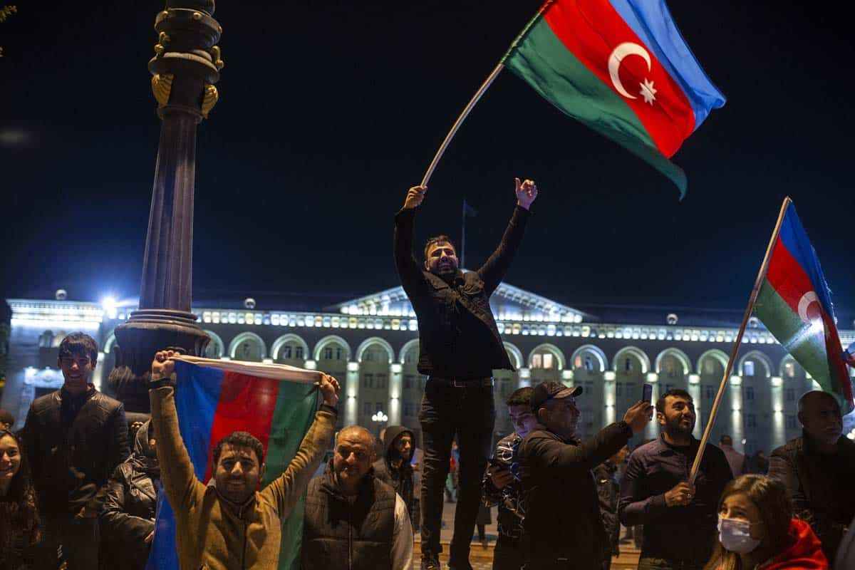 Azerbaycanlılar, Cumhurbaşkanı İlham Aliyev'in ulusa sesleniş konuşmasında, Rusya'nın arabuluculuğunda yapılan anlaşmanın "Azerbaycan için zafer, Ermenistan için ise yenilgi" anlamına geldiğini belirtmesinin ve Ermenistan güçlerinin Laçın, Kelbecer ve Ağdam illerini ay sonuna kadar boşaltacağı müjdesini vermesinin ardından sokaklara akın etti.