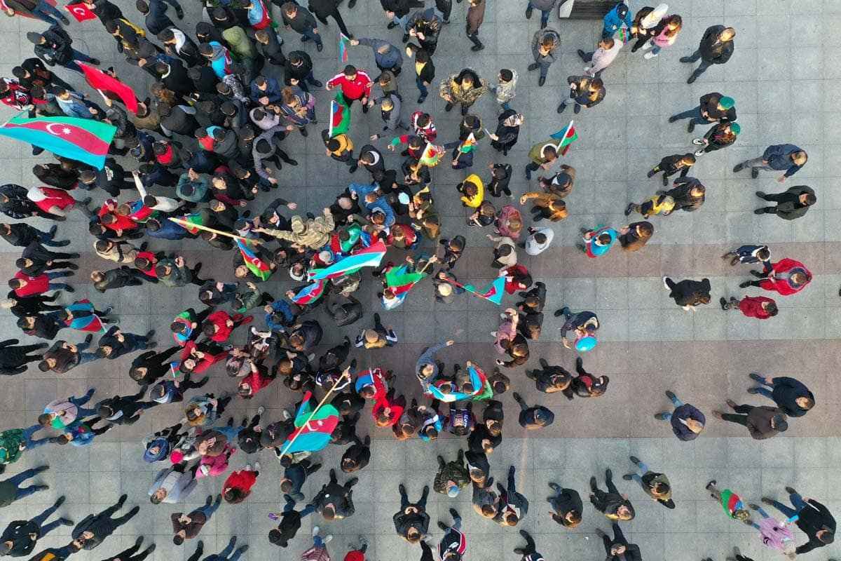 Yüzlerce vatandaş ellerindeki Azerbaycan ve Türk bayraklarıyla Gence Azadlık Meydanı'na geldi.