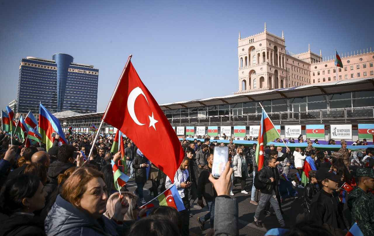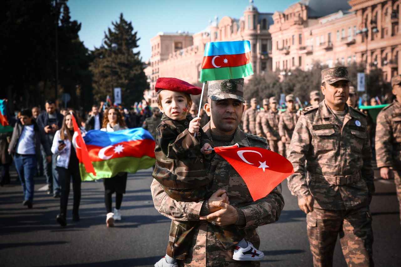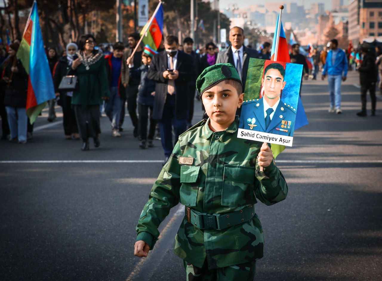 Binlerce kişinin katıldığı yürüyüş, Ermenistan ordusundan ele geçirilen silah ve zırhlı araçların bir kısmının sergilendiği Bakü'deki "Ganimetler Müzesi"nde sona erdi.