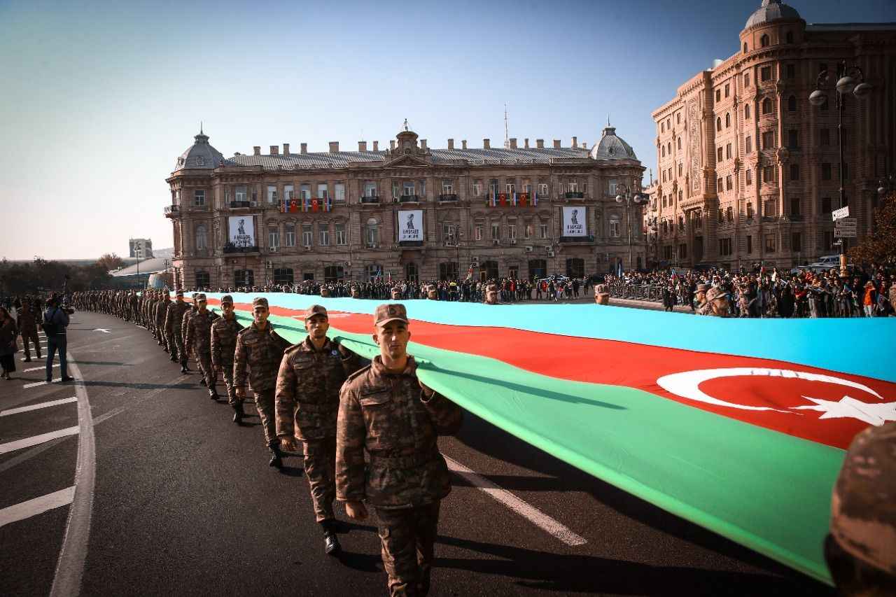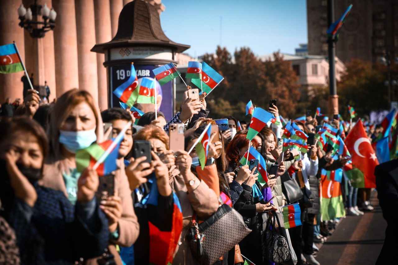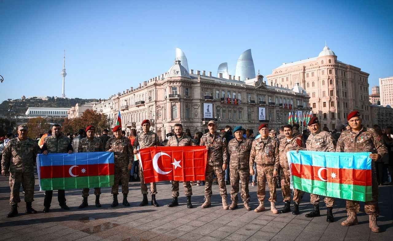 Binlerce kişinin katıldığı yürüyüş, Ermenistan ordusundan ele geçirilen silah ve zırhlı araçların bir kısmının sergilendiği Bakü'deki "Ganimetler Müzesi"nde sona erdi.